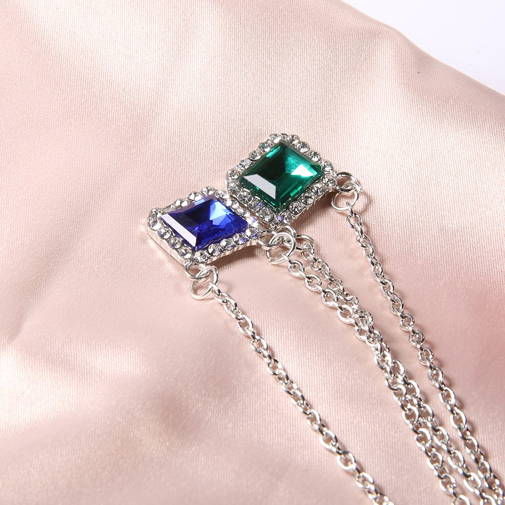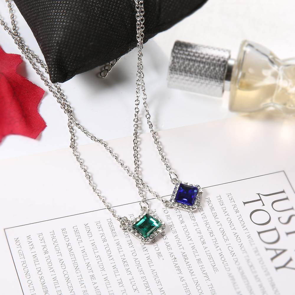 | nameOriginal | New European and American cross-border fashion jewelry square blue green rhinestone double necklace |