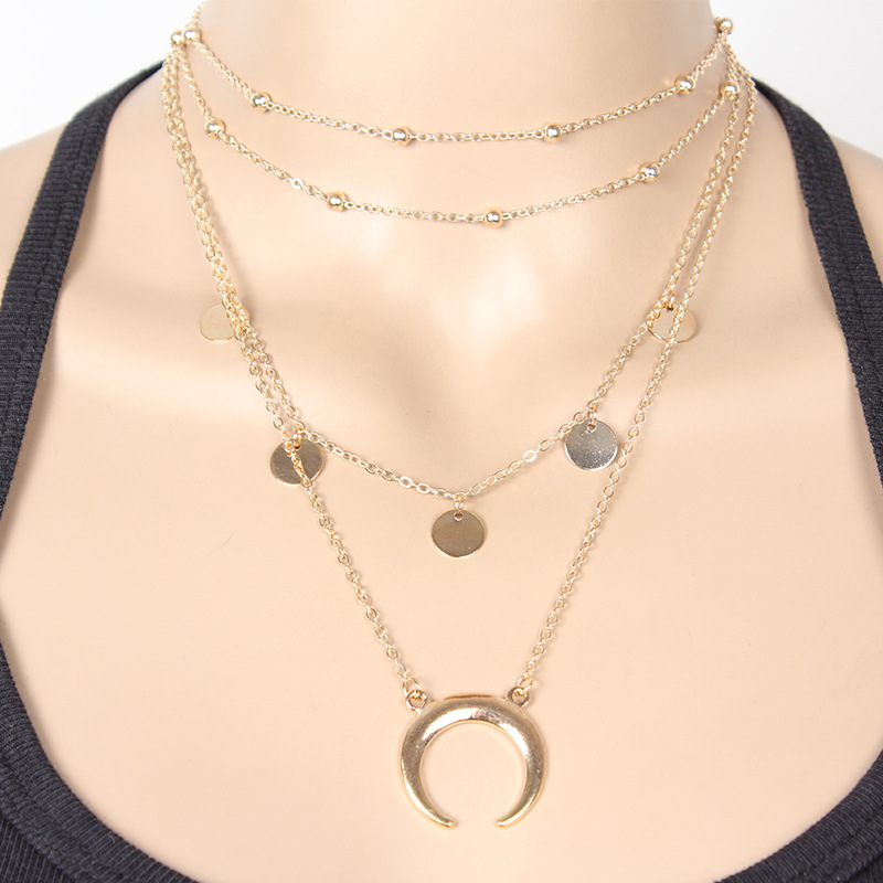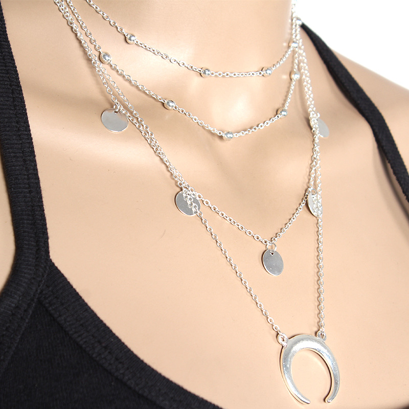 | nameOriginal | New European and American cross-border jewelry fashion metallic sequined moon pendant layered necklace |