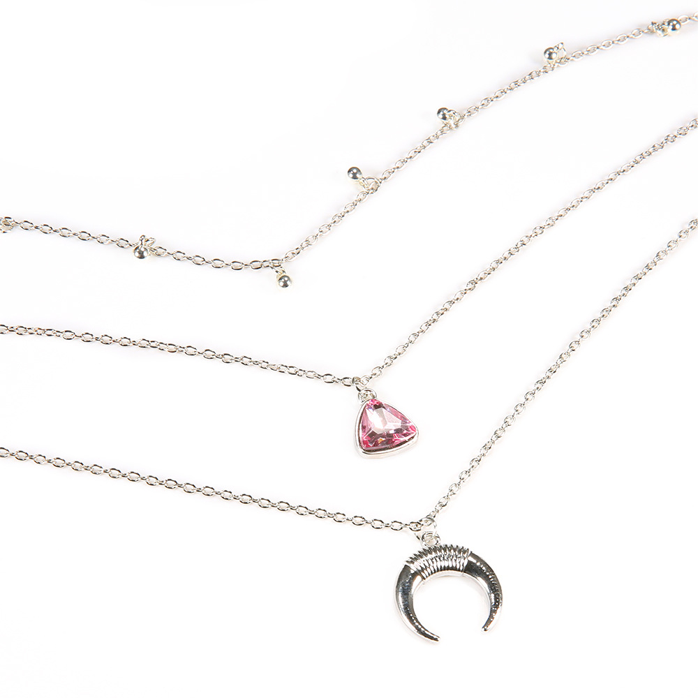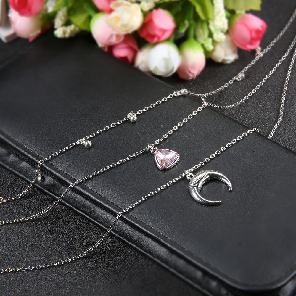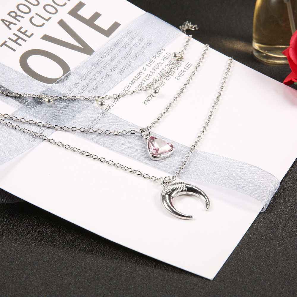 New European and American Cross-border Jewelry Ruby Crescent Beaded Three-layer Necklace