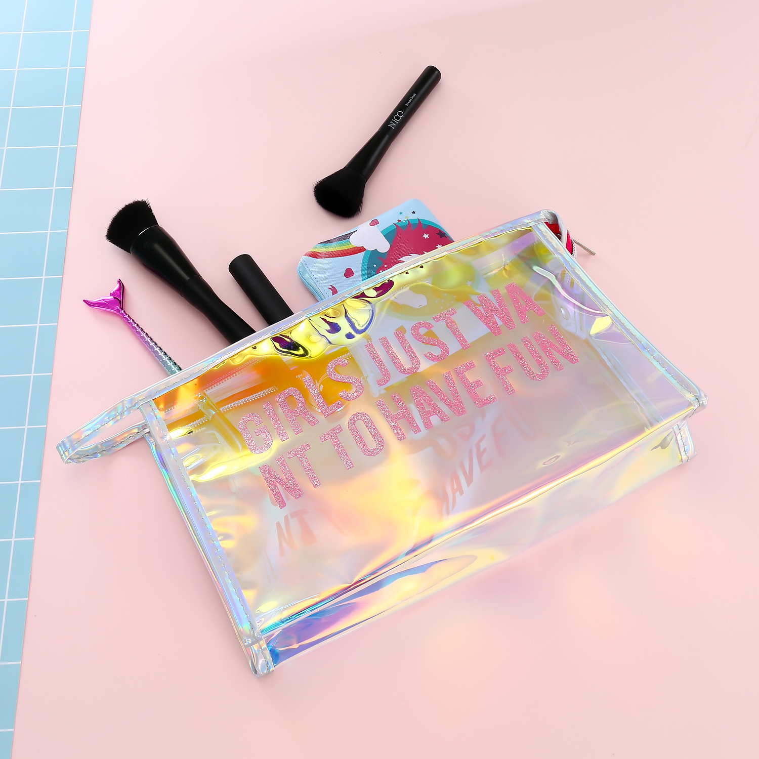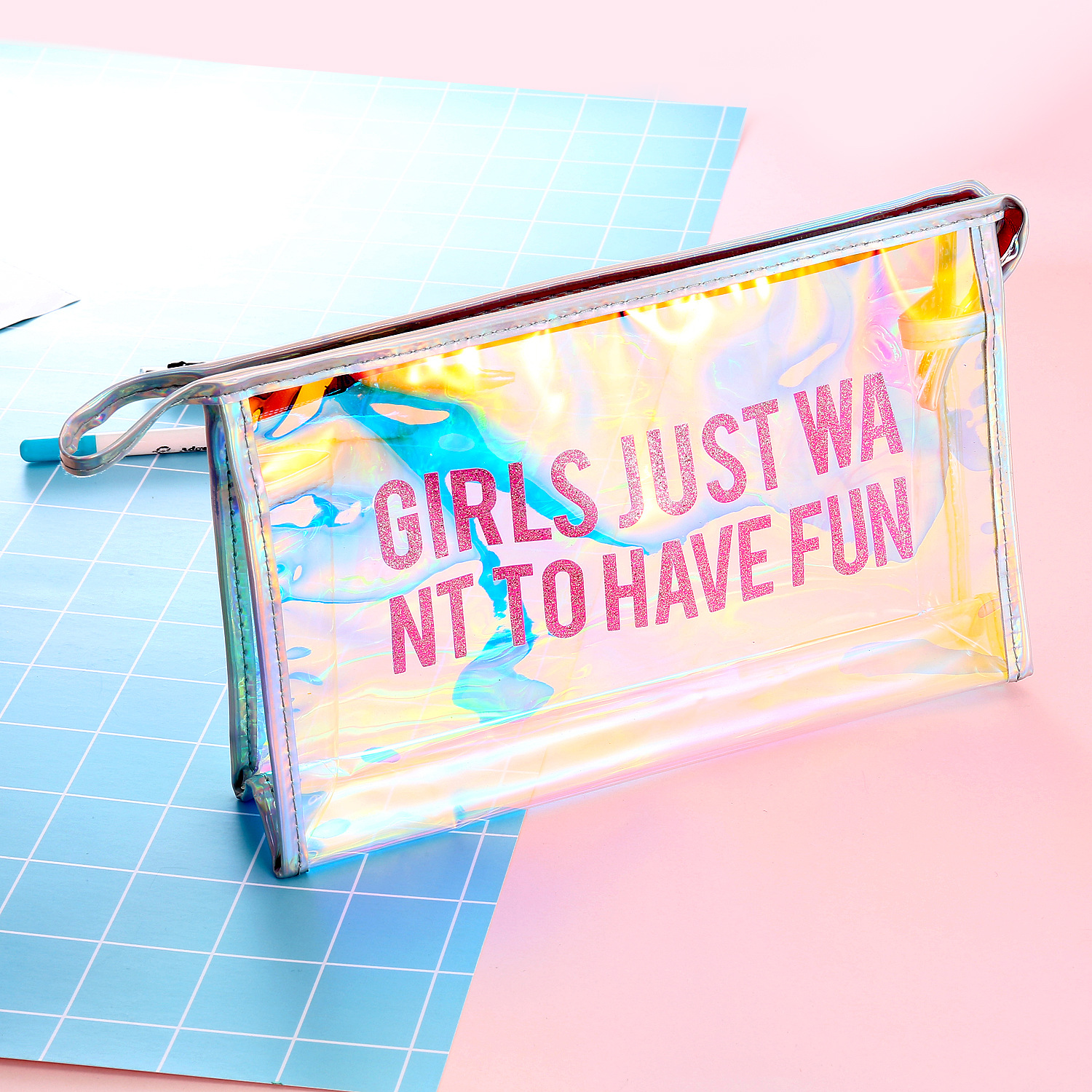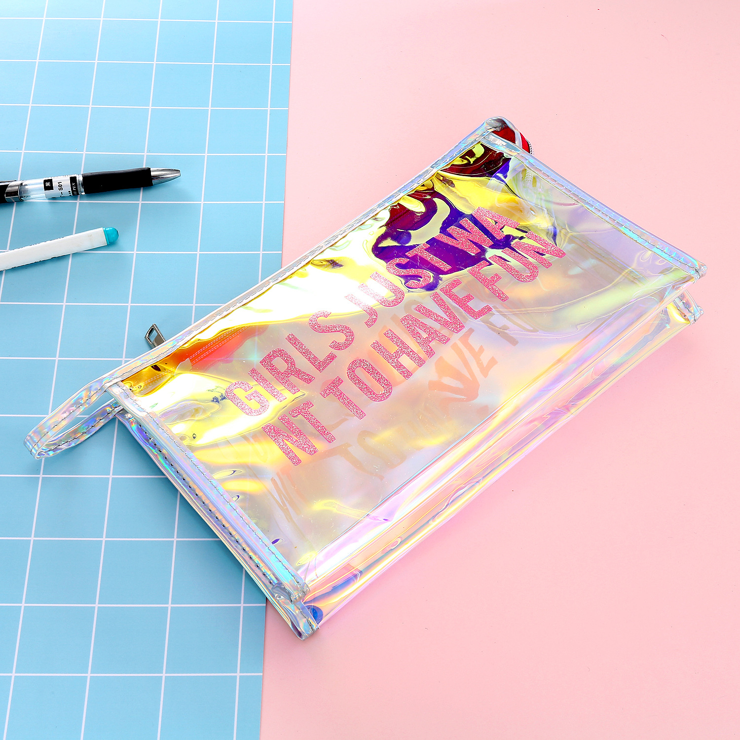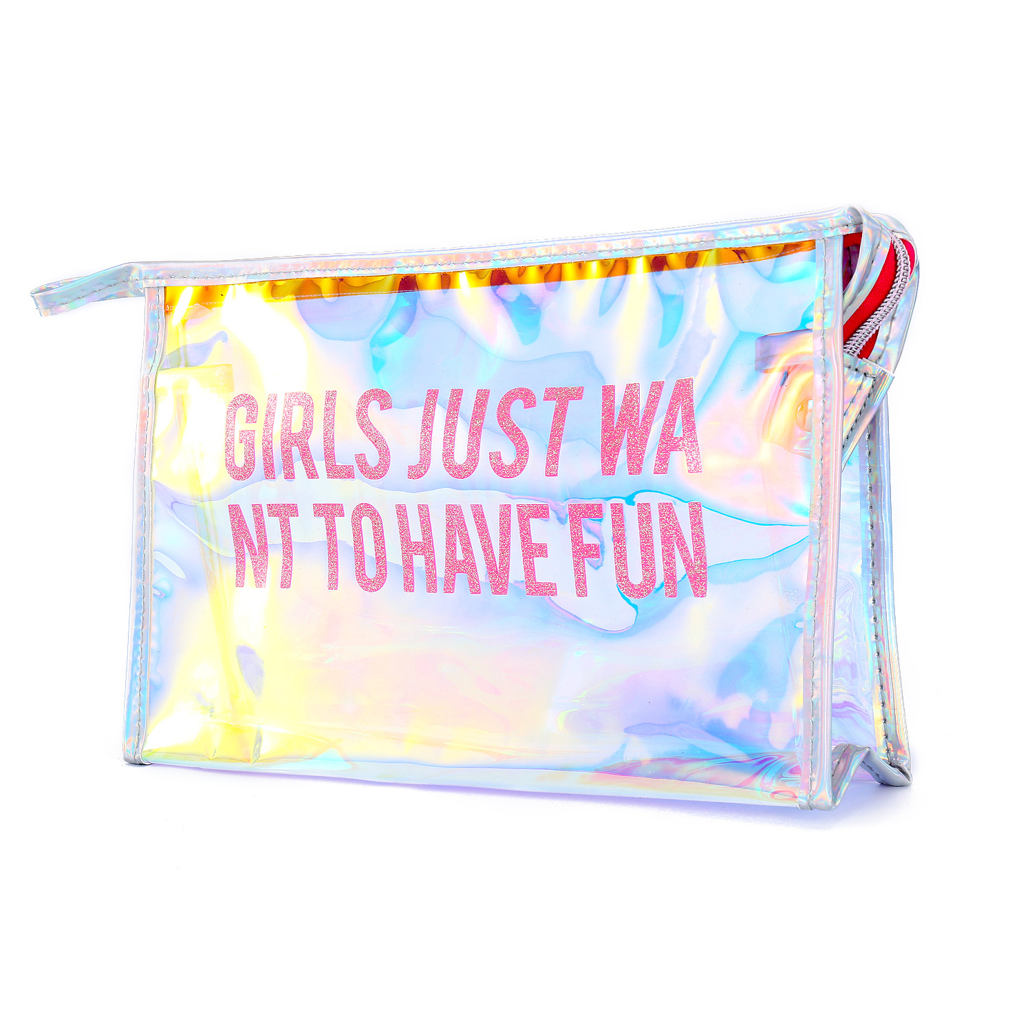 New European and American hot-selling transparent cosmetic bag student laser transparent pencil case hand-held transparent bag women's storage bag