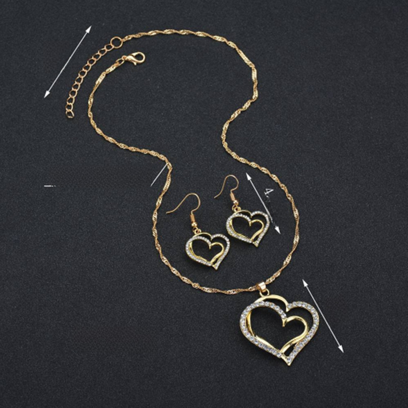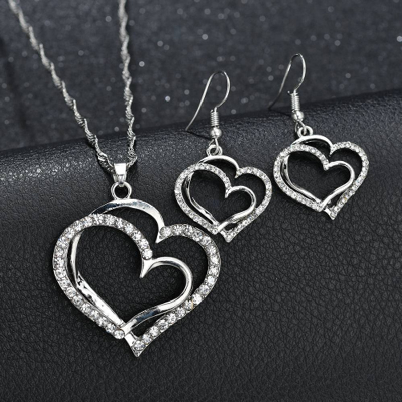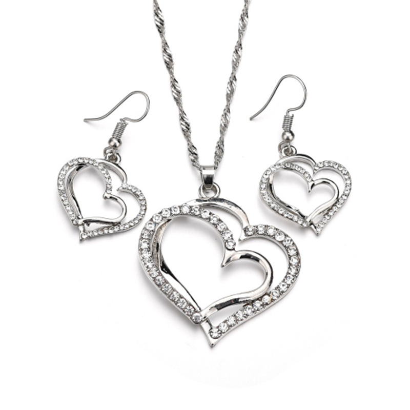 | nameOriginal | New European and American jewelry set heart-shaped dinner wedding accessories double love heart-shaped earrings necklace spot wholesale |