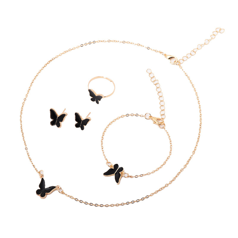| nameOriginal | New European and American jewelry women's fashion temperament personality butterfly necklace earring ring bracelet 4 piece set wholesale |
