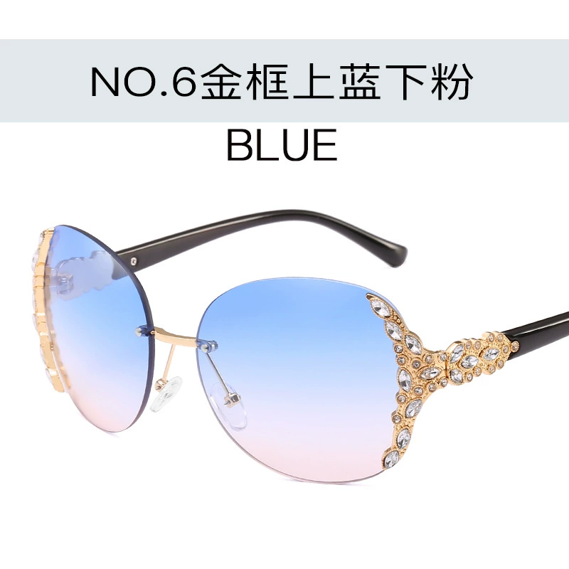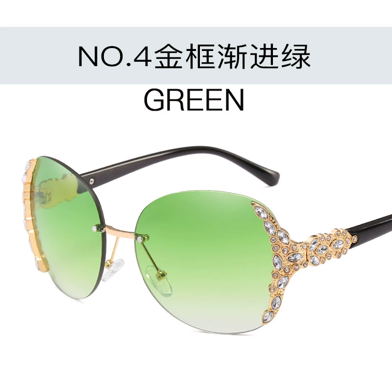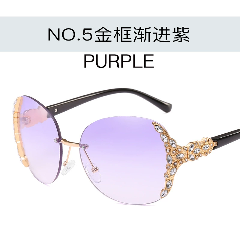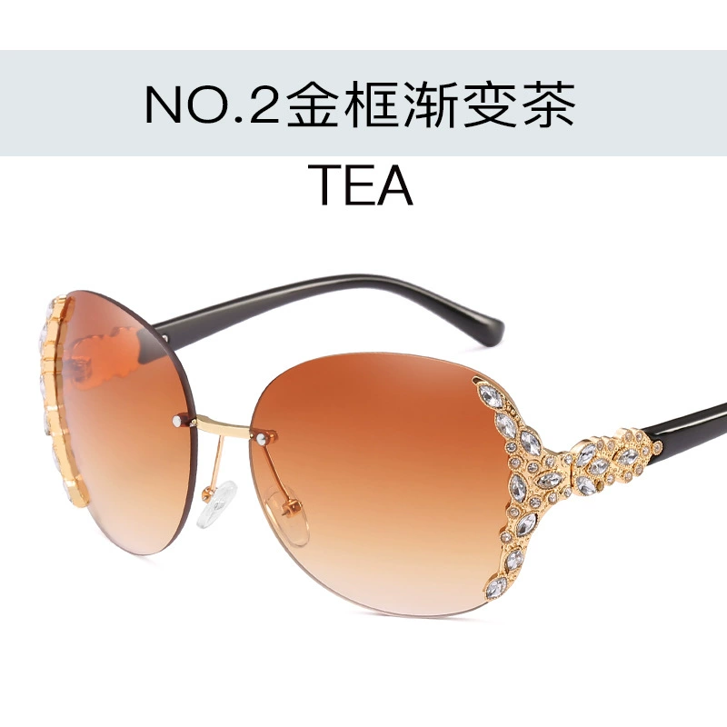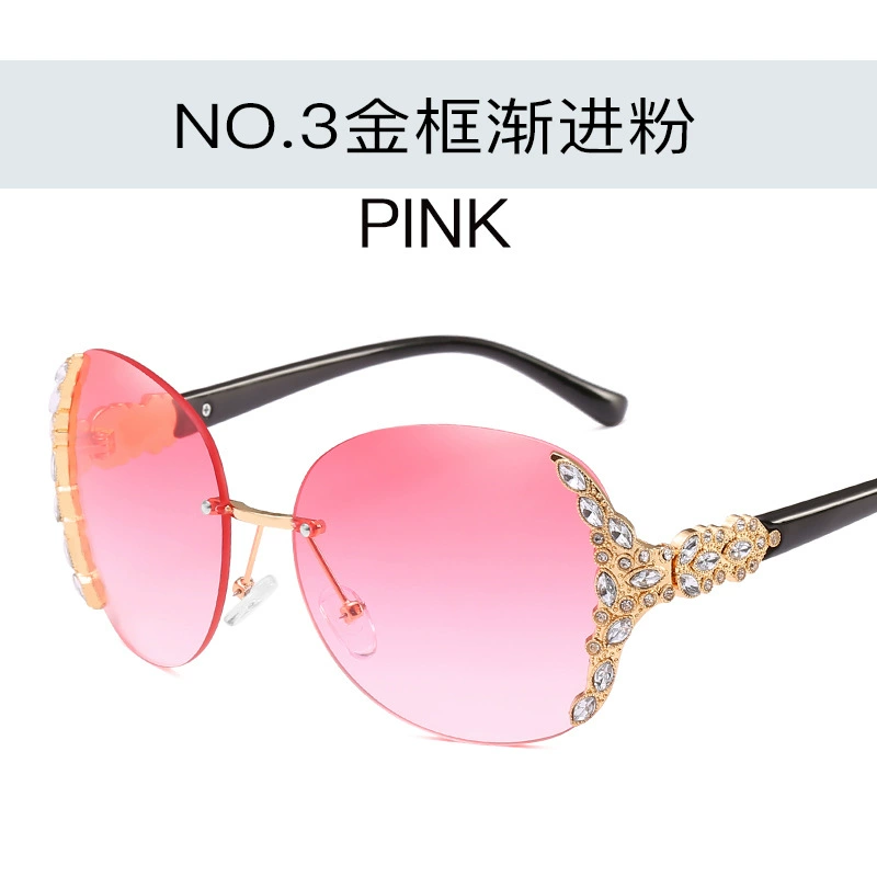 New European and American rimless sunglasses, trendy women's sunglasses with diamonds, large frame sunglasses, Internet celebrity street style sunglasses