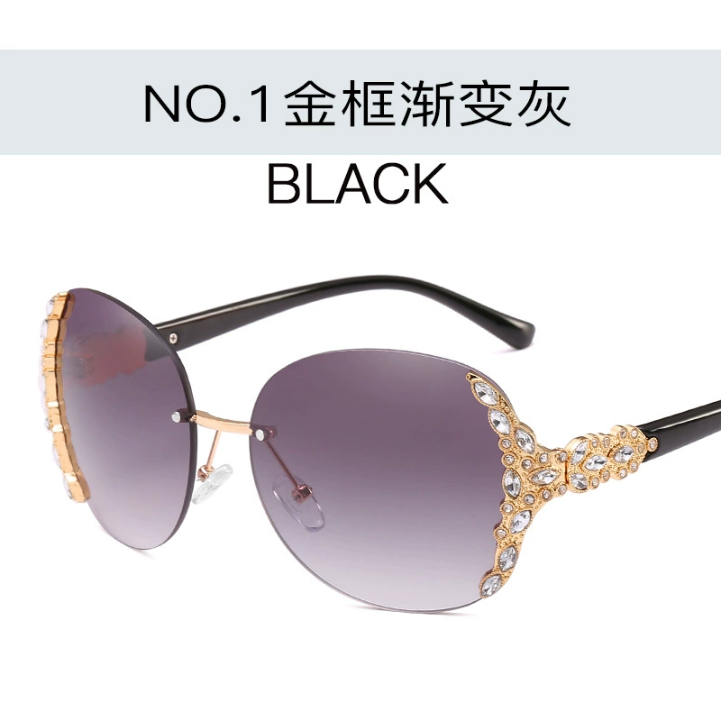 New European and American rimless sunglasses, trendy women’s sunglasses with diamonds, large frame sunglasses, Internet celebrity street style sunglasses