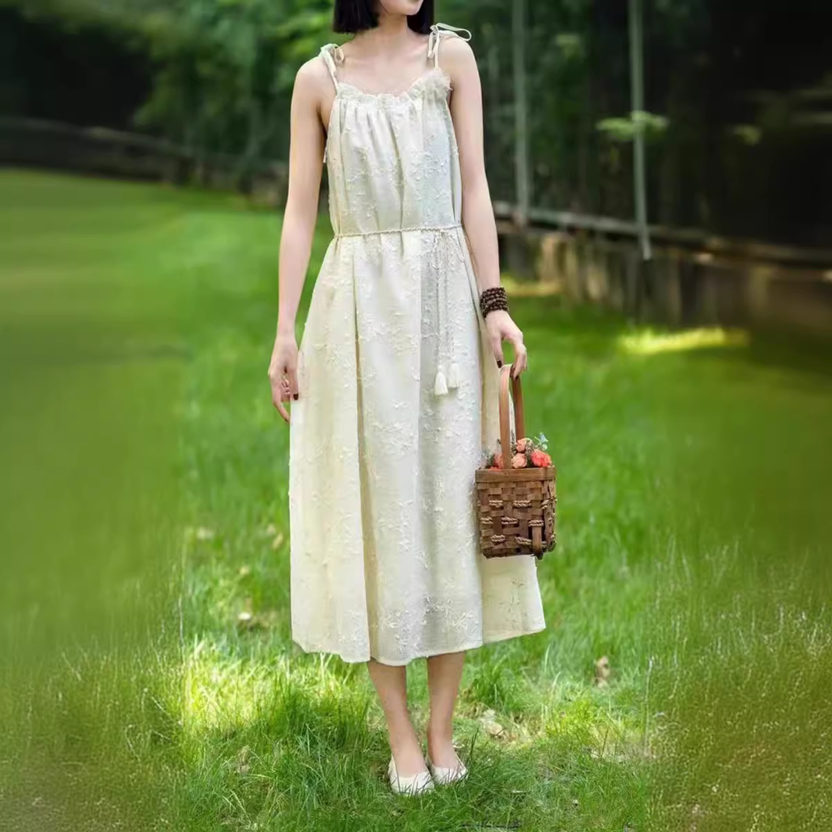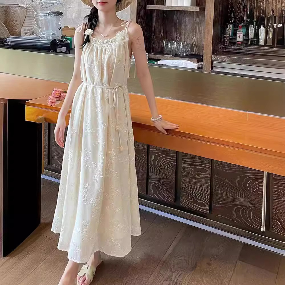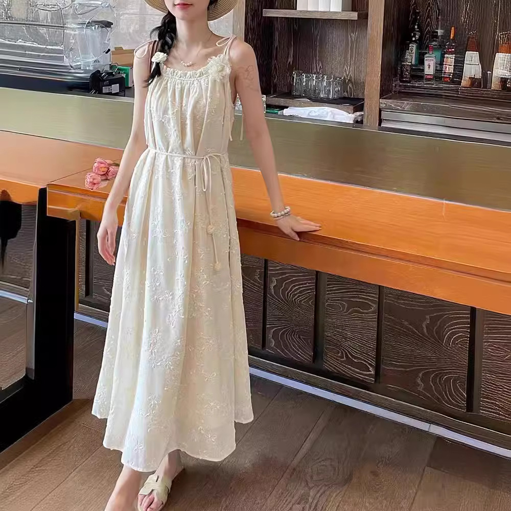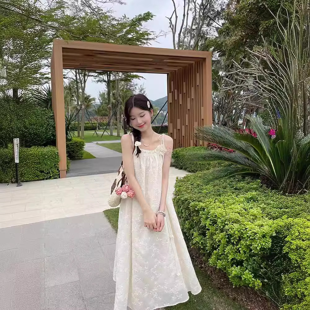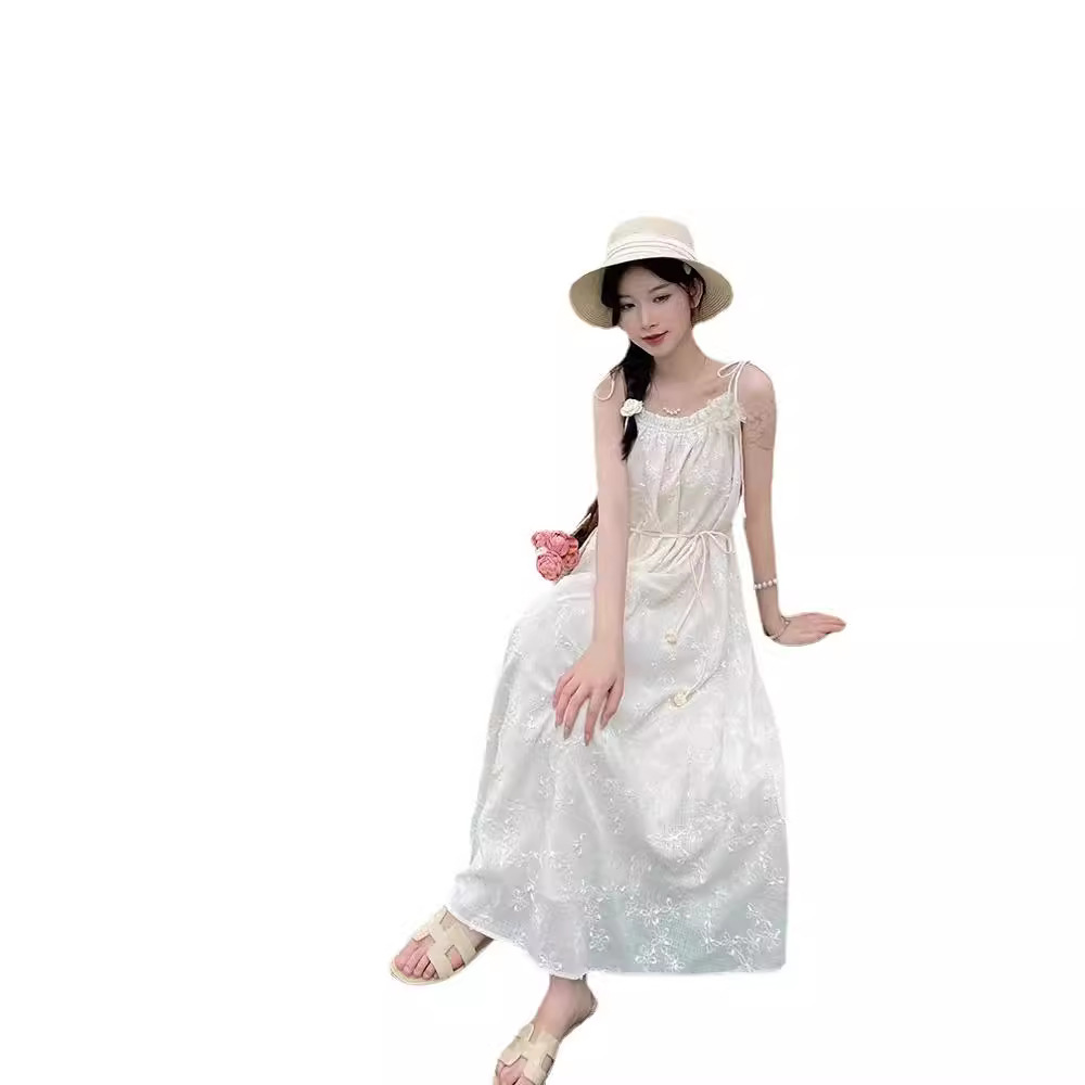 | nameOriginal | New Explosive Summer Loose Waist Lace-up Slim Sling Off-white Fresh Travel Daily Skirt |