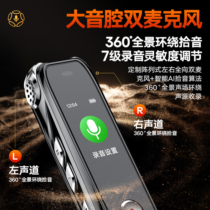 New exquisite recording pen HD noise reduction recording business voice control long endurance to text double microphone professional recorder