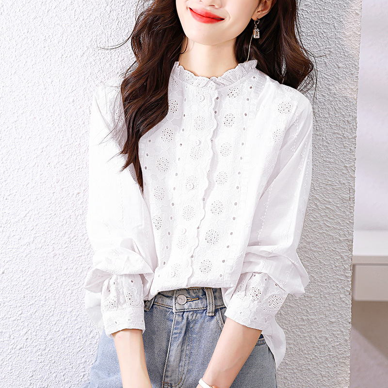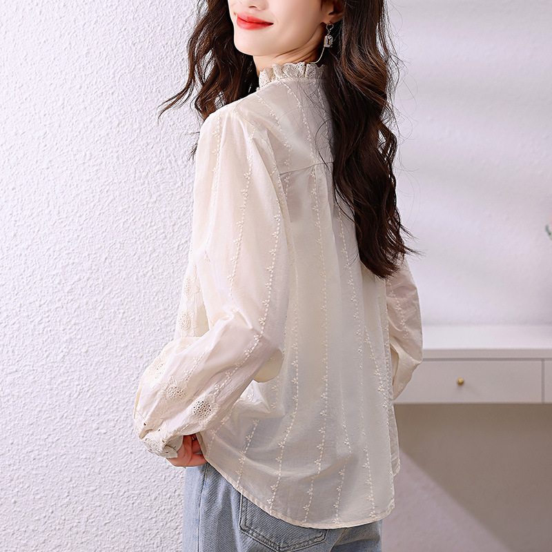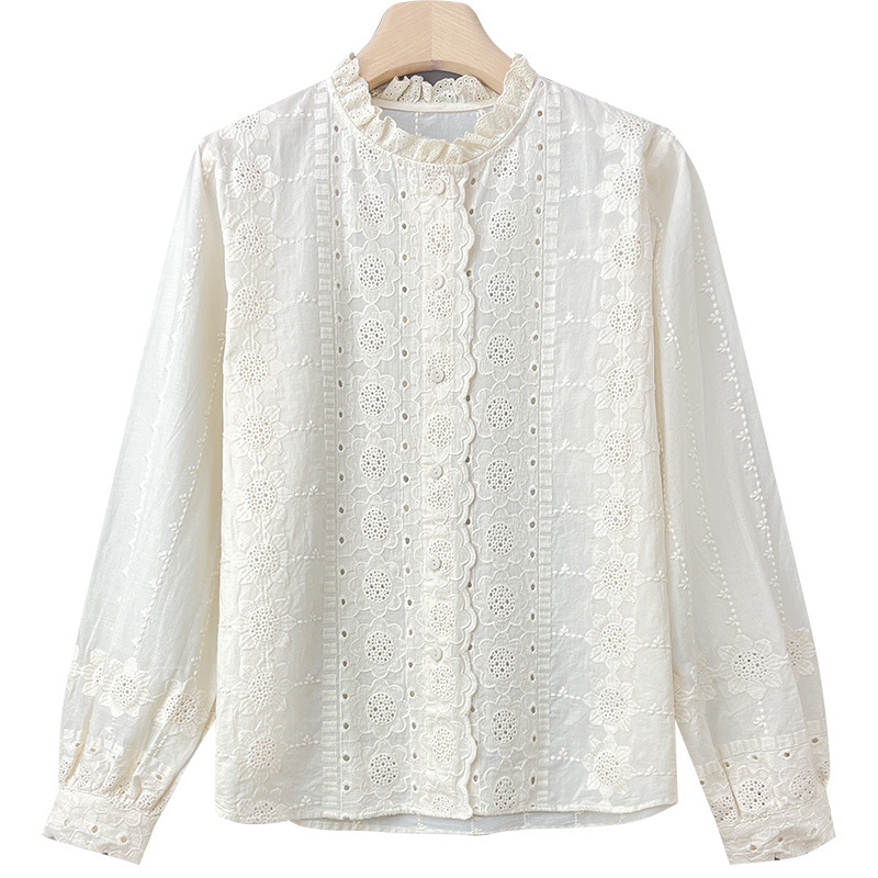 | nameOriginal | New factory direct 2024 autumn new lace lace collar apricot shirt women's long sleeve embroidered shirt |