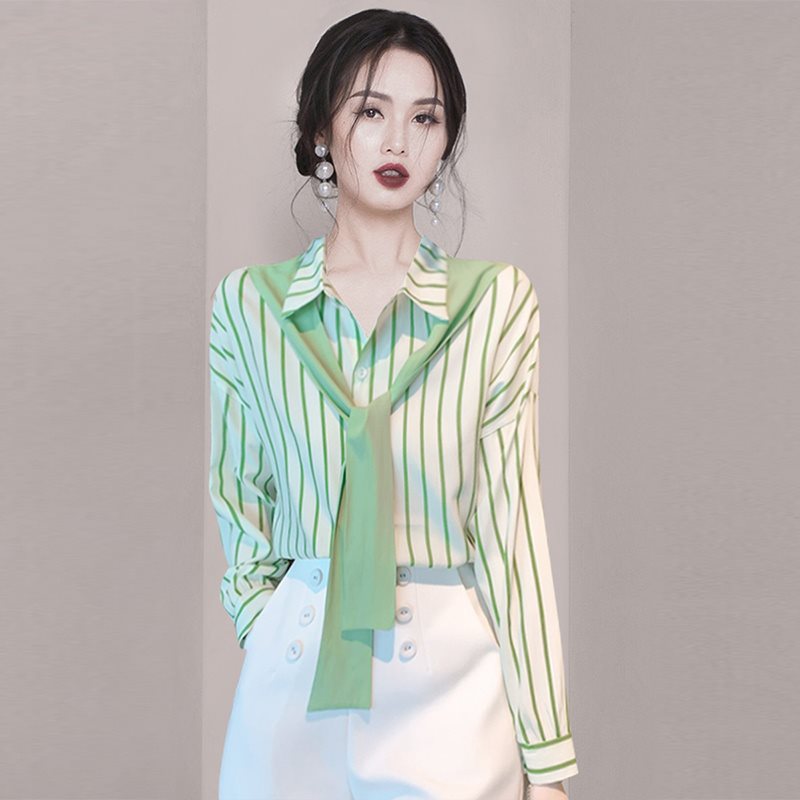 | nameOriginal | New Fake Two-piece Shawl Shirt French Retro Hong Kong Style Striped Shirt Top Elegant Western Style Beautiful Small Shirt for Women |