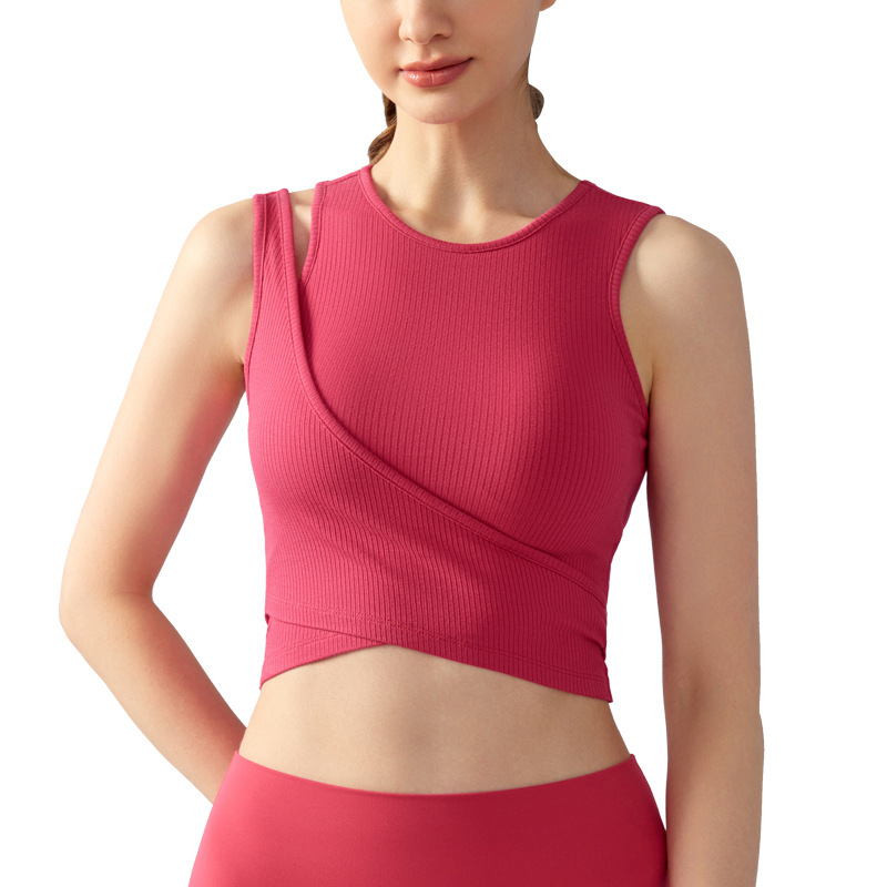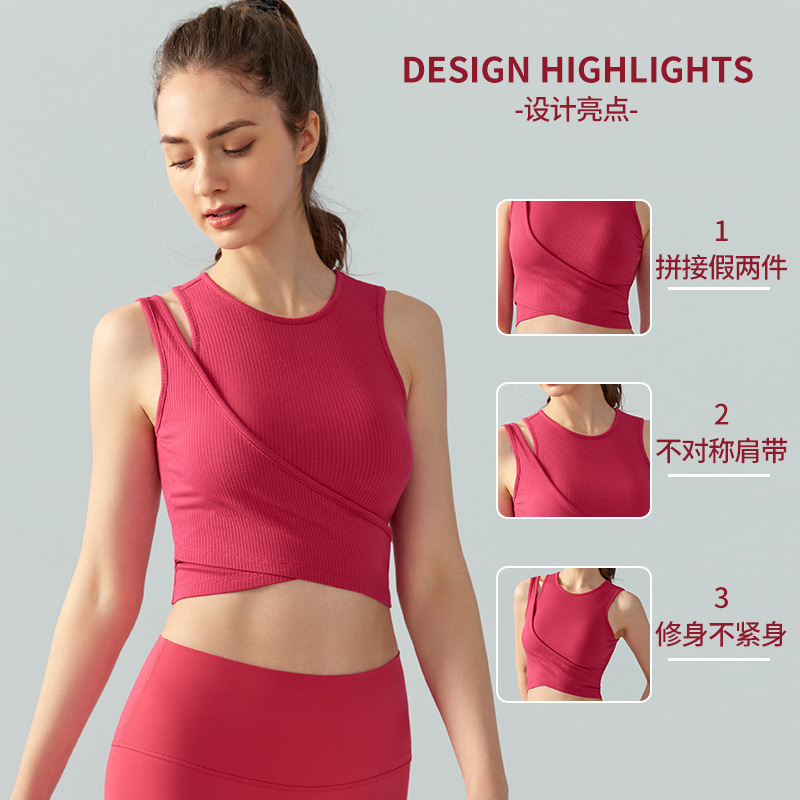 | nameOriginal | New fake two-piece stitching fitness clothes women's top with chest pad simple asymmetric shoulder strap outdoor sports yoga clothes |