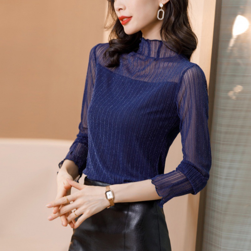 New fashion bright silk mesh long sleeve inner temperament bottoming shirt for women 1316