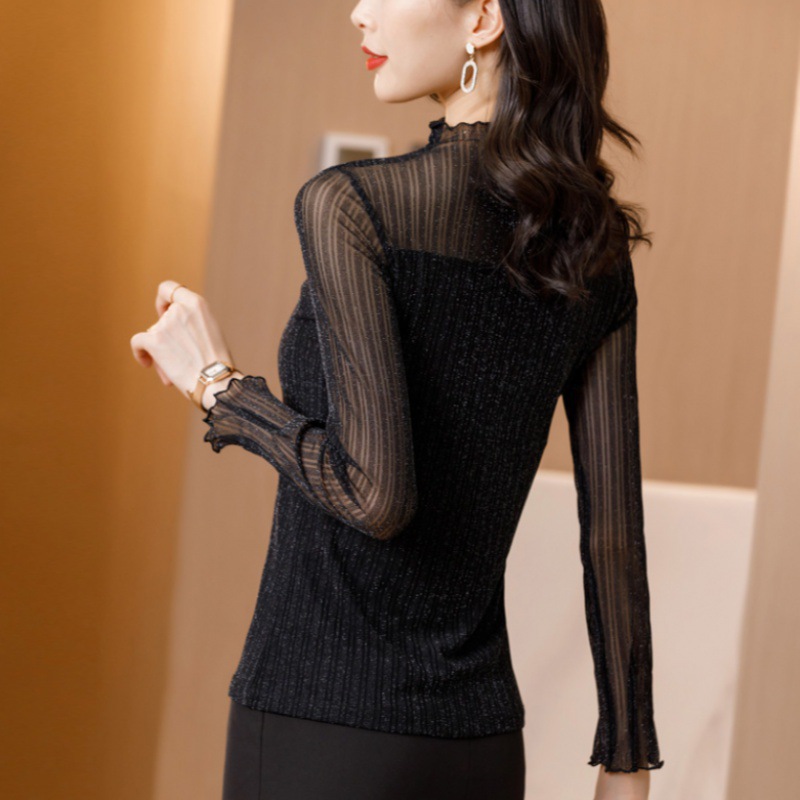 New fashion bright silk mesh long sleeve inner temperament bottoming shirt for women 1316