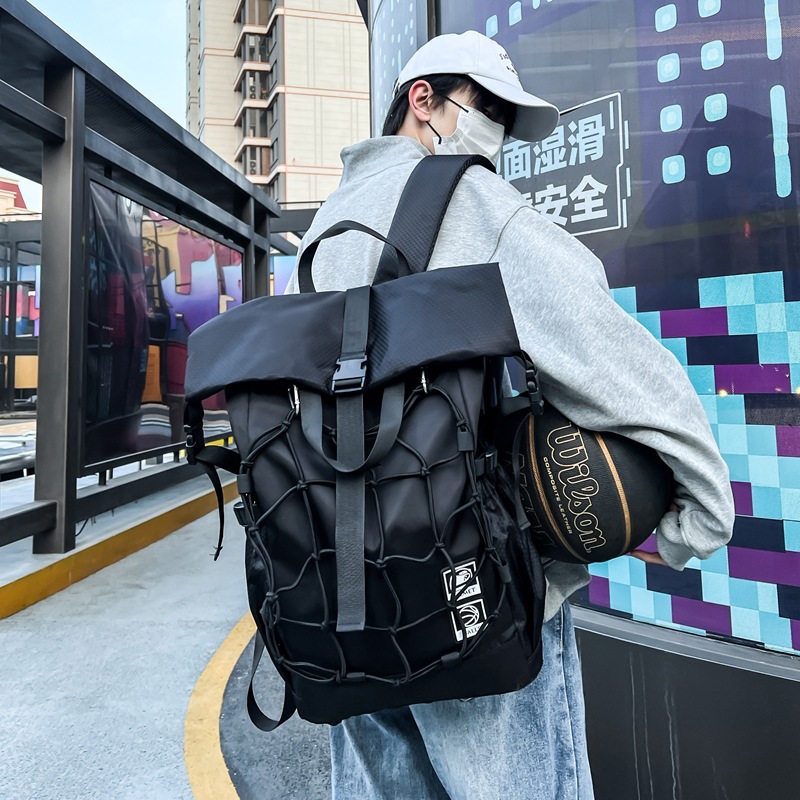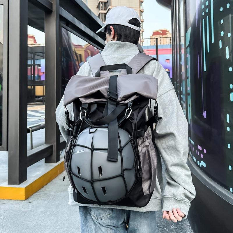 New Fashion High Sense Roll-up Shoulder Bag Men's Sports Fitness Basketball Bag Riding Helmet Backpack Student Schoolbag