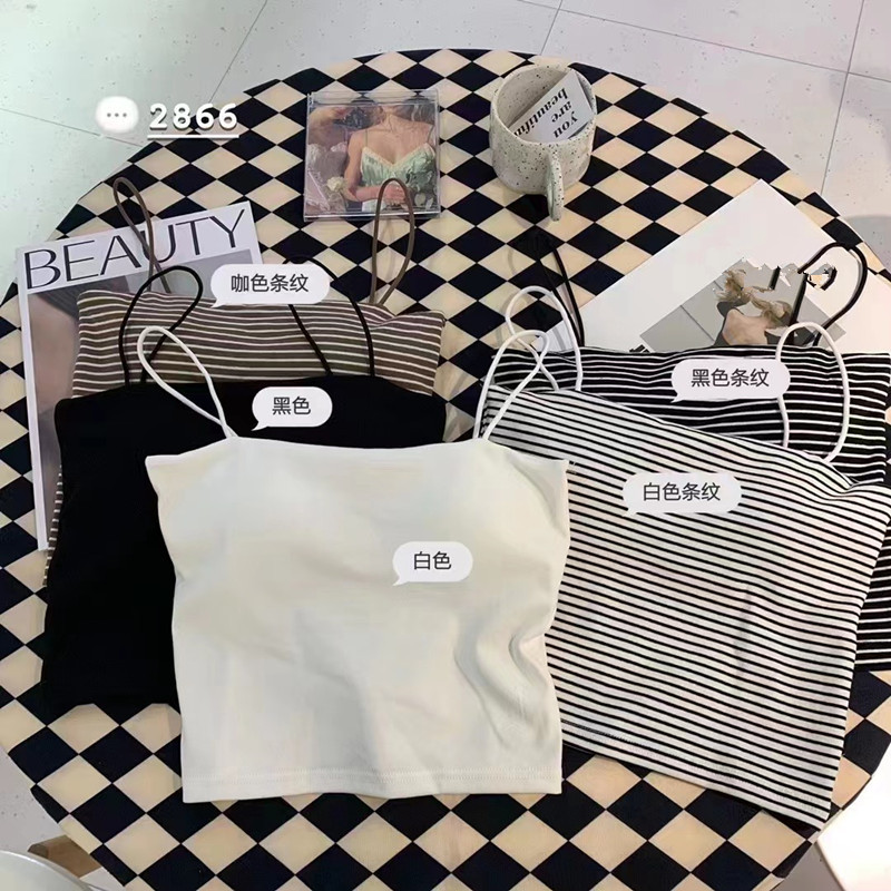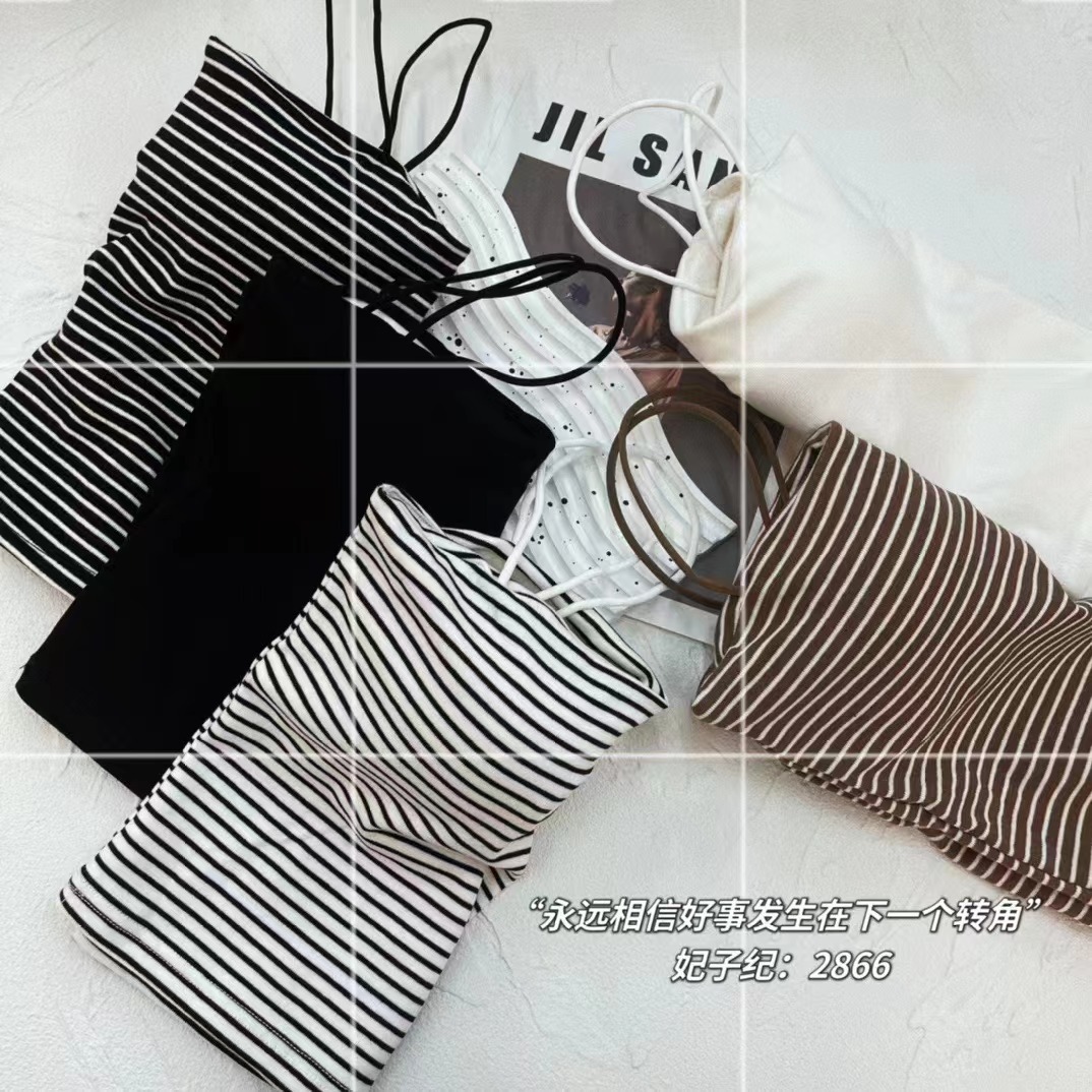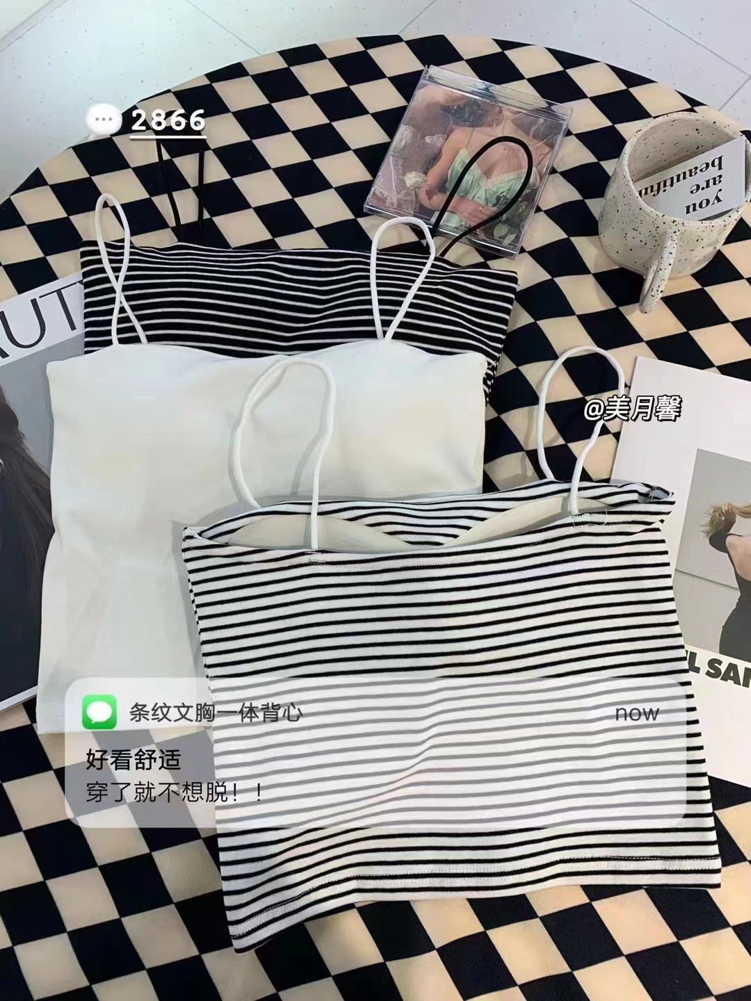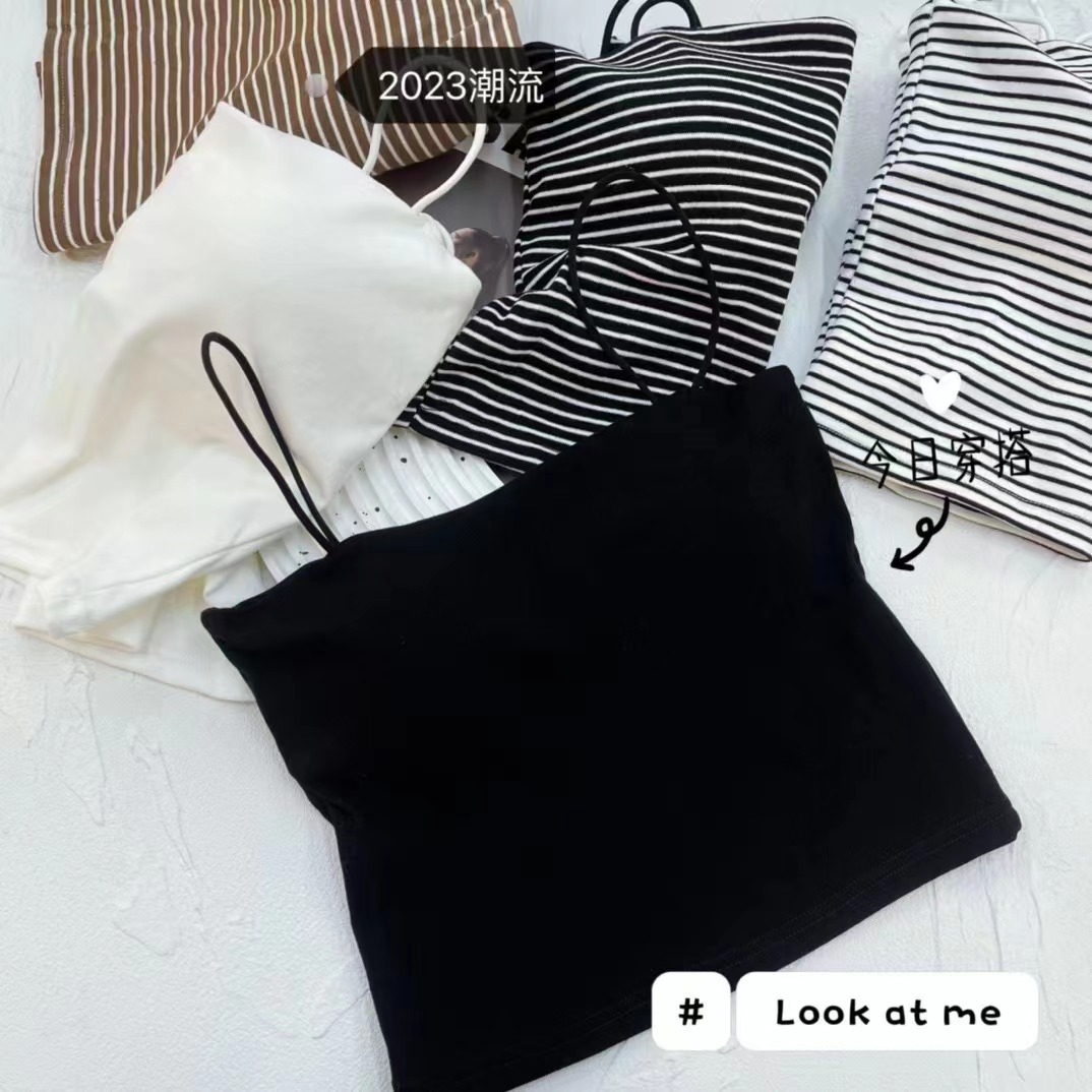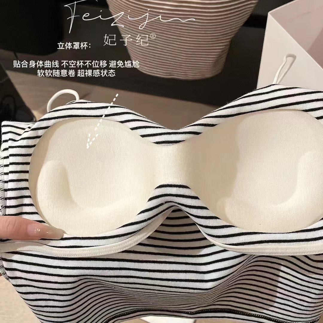 New Fashion Pinstriped Shoulder Beauty Back Camisole Women’s Belt Chest Pad Fixed One-piece Cup Tube Top Underwear Summer