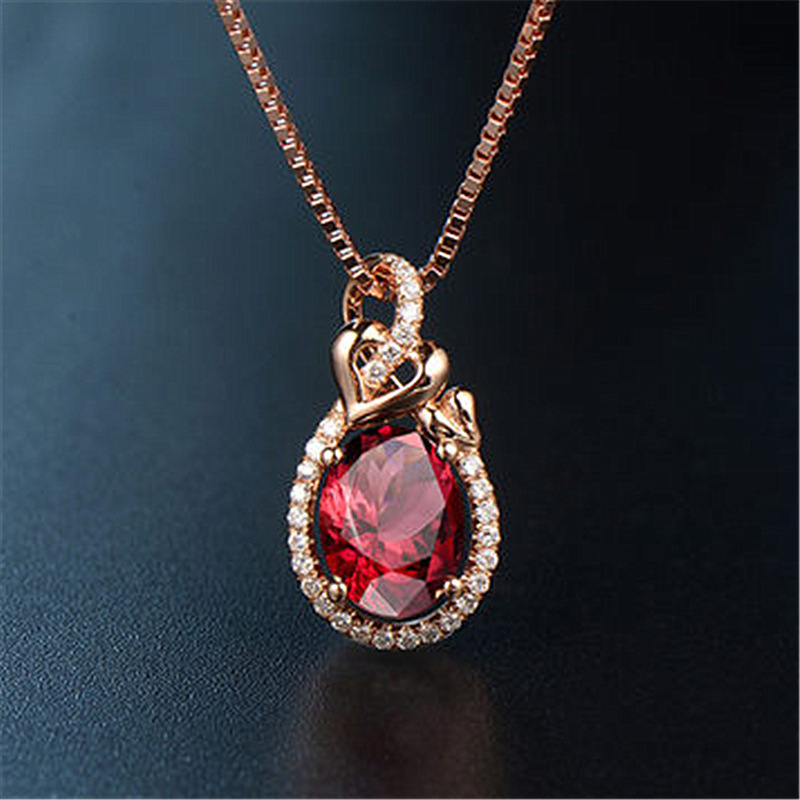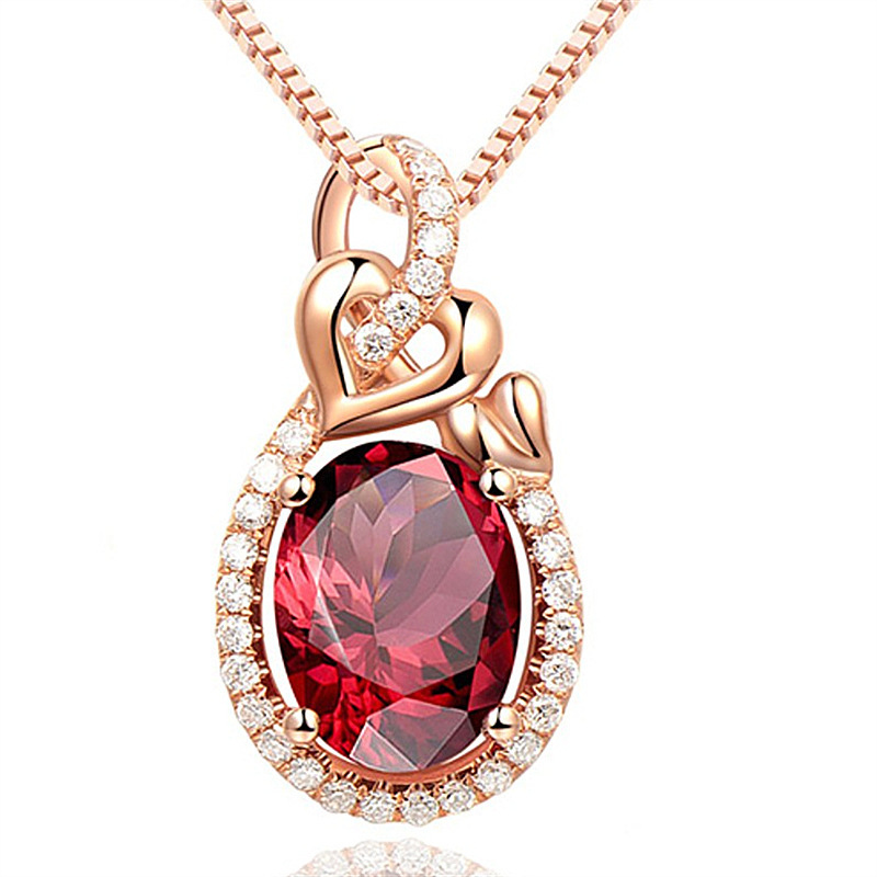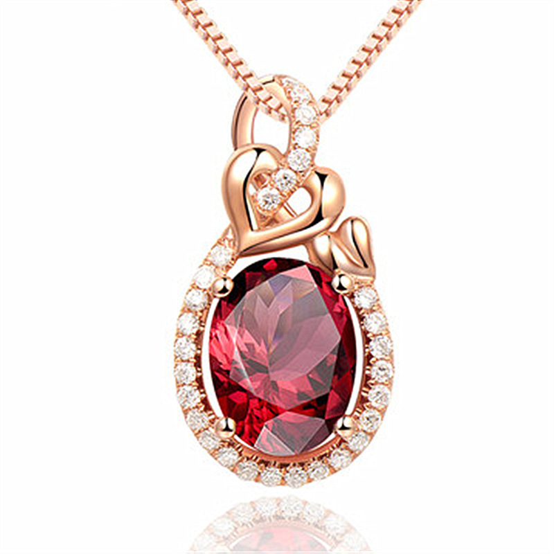 New fashion simple temperament double love pendant interwoven heart imitation natural red tourmaline ruby color treasure pendant