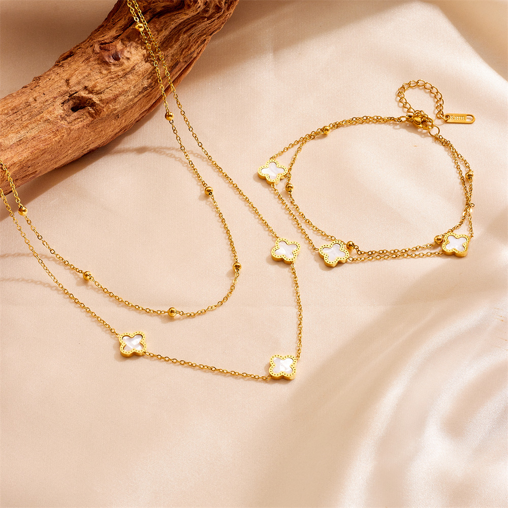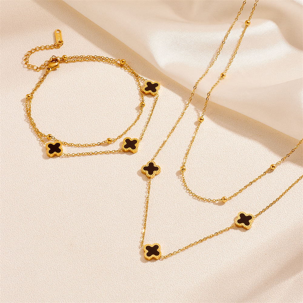 | nameOriginal | New Fashion Titanium Steel Four-leaf Clover Double-layer Bracelet Necklace suit European and American Fashion All-match Temperament Necklace Bracelet |
