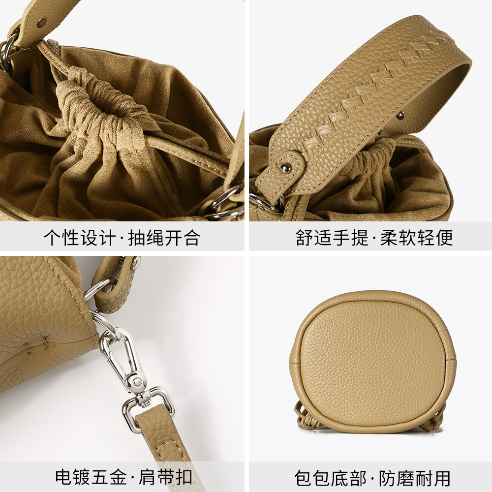 | nameOriginal | New first layer cowhide bucket bag niche design simple wind texture handbag commuter all-match shoulder messenger bag |