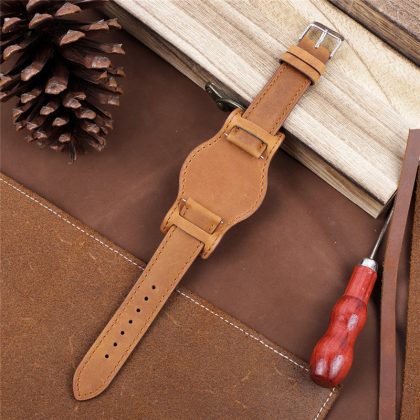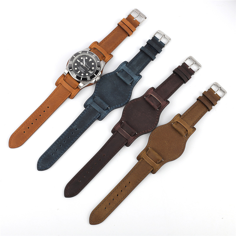 | nameOriginal | New First Layer Cowhide Leather Bag with Base Tray Strap Crazy Horse Leather Watch Accessories Brown 20 22mm |