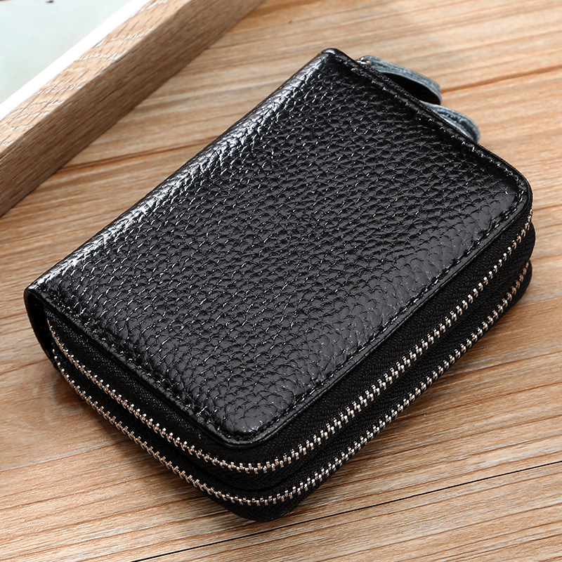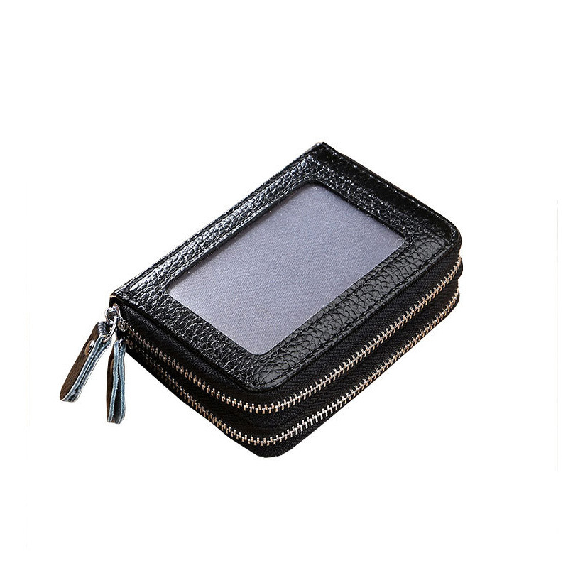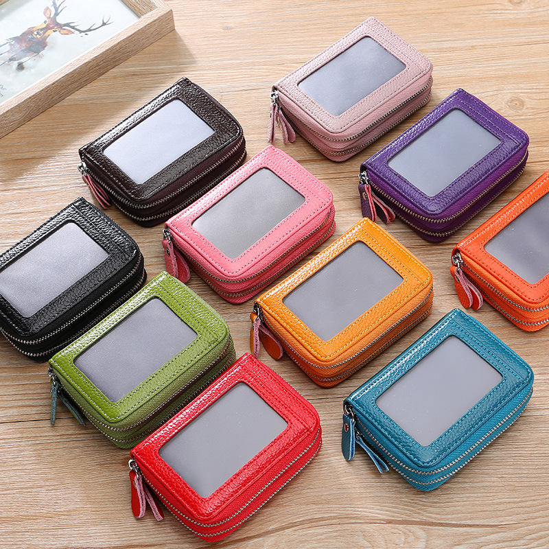 New first layer cowhide RFID anti-scan leather organ card holder foreign trade double zipper neutral coin purse