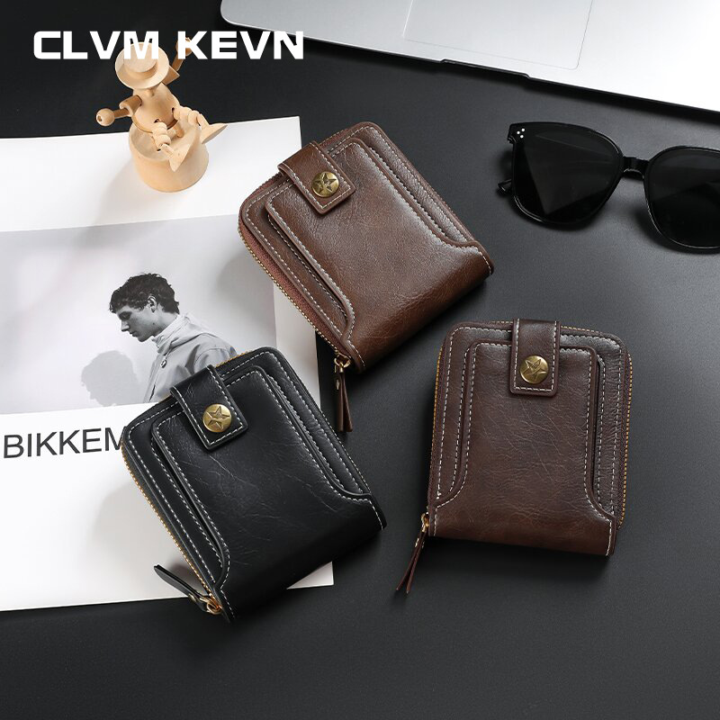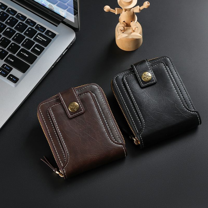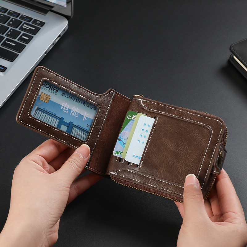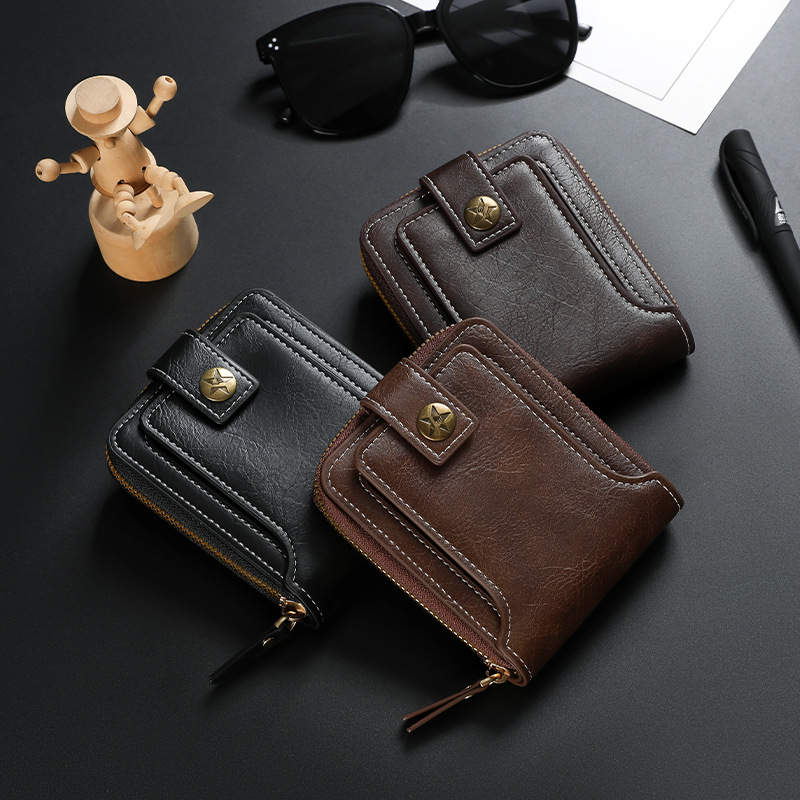 New foreign trade men’s short wallet European and American fashion multifunctional wallet zipper buckle card bag wholesale
