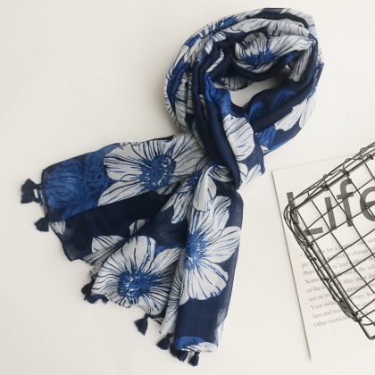 nameOriginal | New Foreign Trade Original Single Blue Printed Cotton and Linen Scarf Retro Ethnic Style Super Large Travel Sunscreen Shawl Beach Towel |