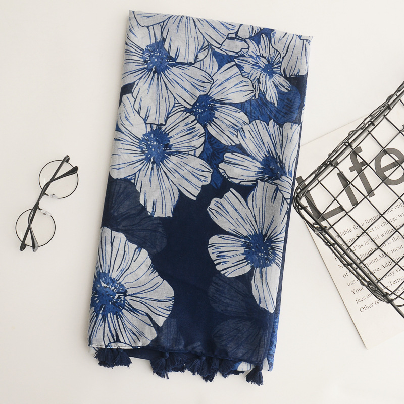 | nameOriginal | New Foreign Trade Original Single Blue Printed Cotton and Linen Scarf Retro Ethnic Style Super Large Travel Sunscreen Shawl Beach Towel |