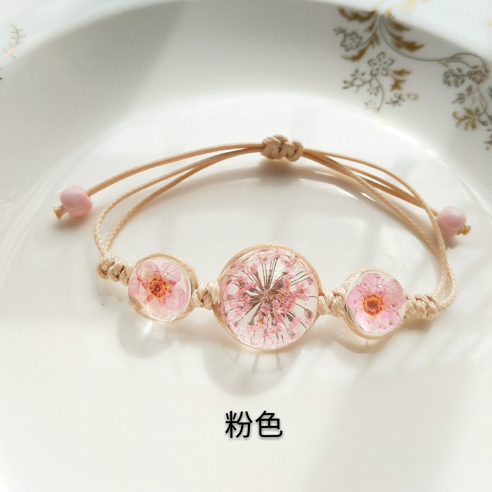 | nameOriginal | New forest plant dried flower bracelet glass ball immortal flower hand-woven real flower hand decoration new in 2023 |