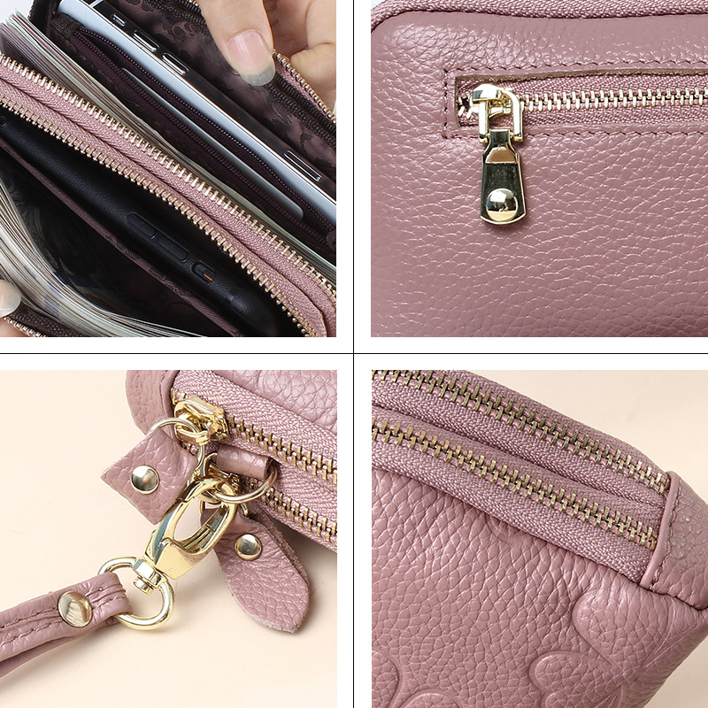 | nameOriginal | New Four-leaf Clover Embossed Double Zipper Mobile Phone Bag Top Layer Cowhide Women's Hand Bag Genuine Leather Long Wallet Wallet |