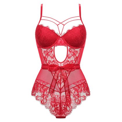 | nameOriginal | New French Style Women's Sexy Jumpsuit Temptation Bow Transparent Lace Jumpsuit |