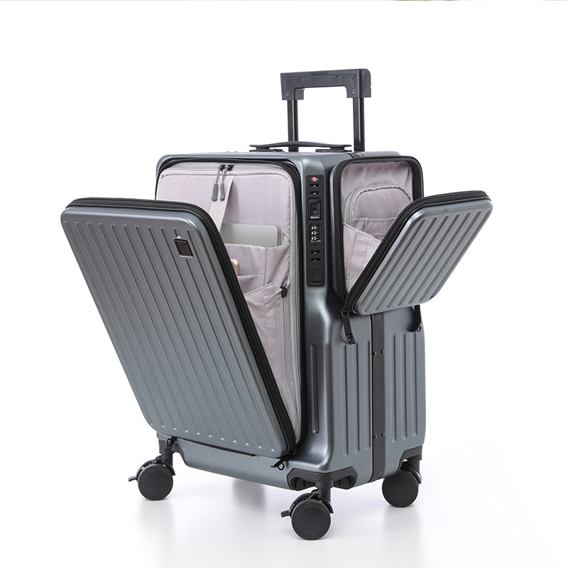 New Front Open Cover Zipper Case Large Capacity Multifunctional Luggage Case Men’s 20-inch Boarded Case Lightweight Double Open Suitcase