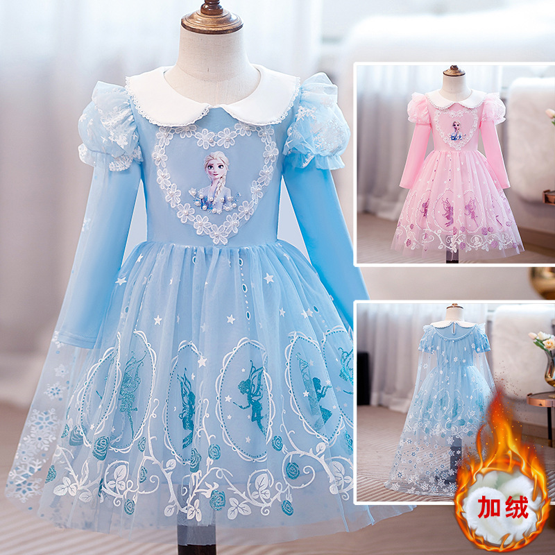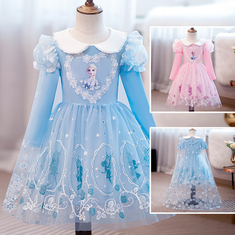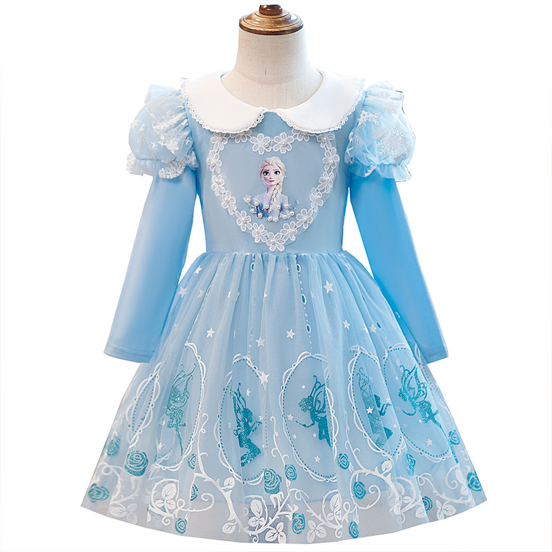 | nameOriginal | New Frozen princess Elsa dress girls' spring and summer dress long short sleeve dress children's blue dress |
