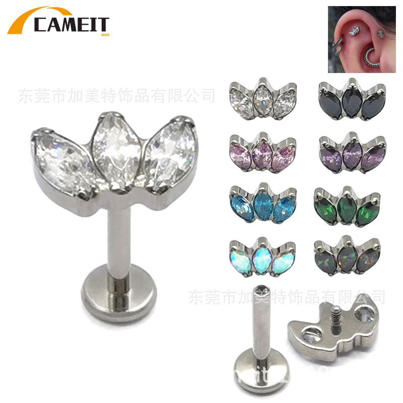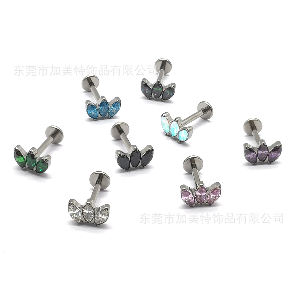 | nameOriginal | New G23 titanium horse eye zircon petal shaped clover lip nail ear bone nail nose nail men's and women's body piercing jewelry |