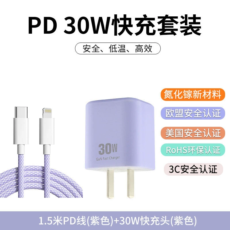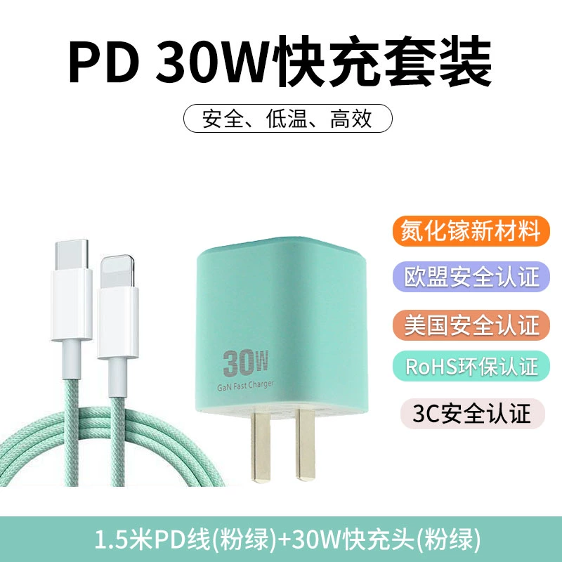 | nameOriginal | New gallium nitride suitable for Apple iPhone 14 Promax fast charging head dual port 30W charger 13 genuine mobile phone PD data cable plug Huawei fast USB flash charging set IPAD tablet |