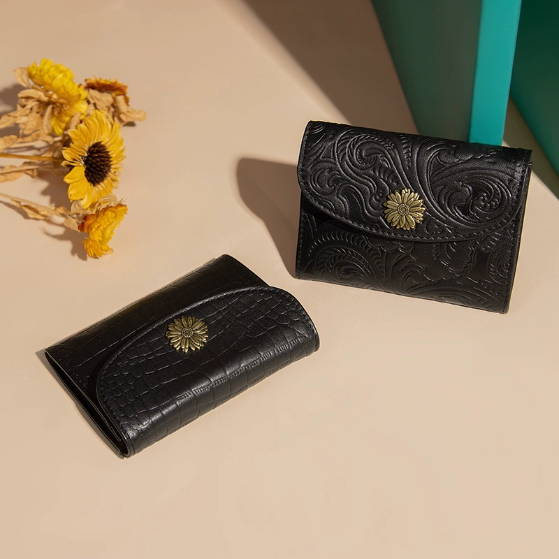 New genuine first-layer cowhide printed coin purse women’s coin purse card holder driver’s license bag multi-functional snap bag