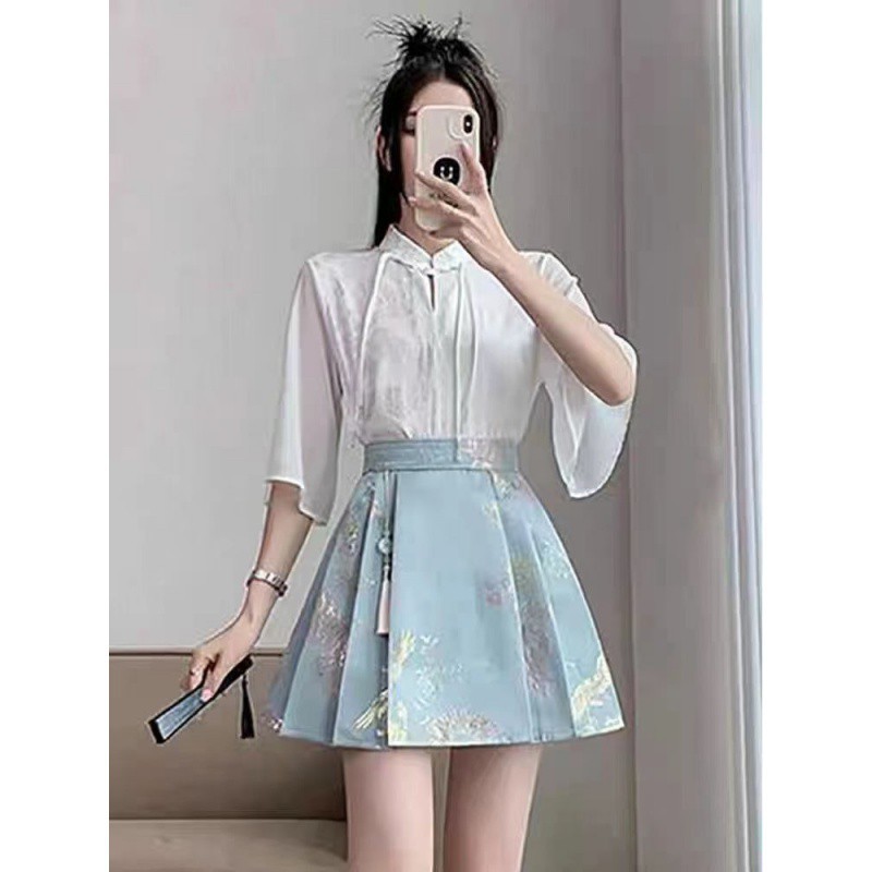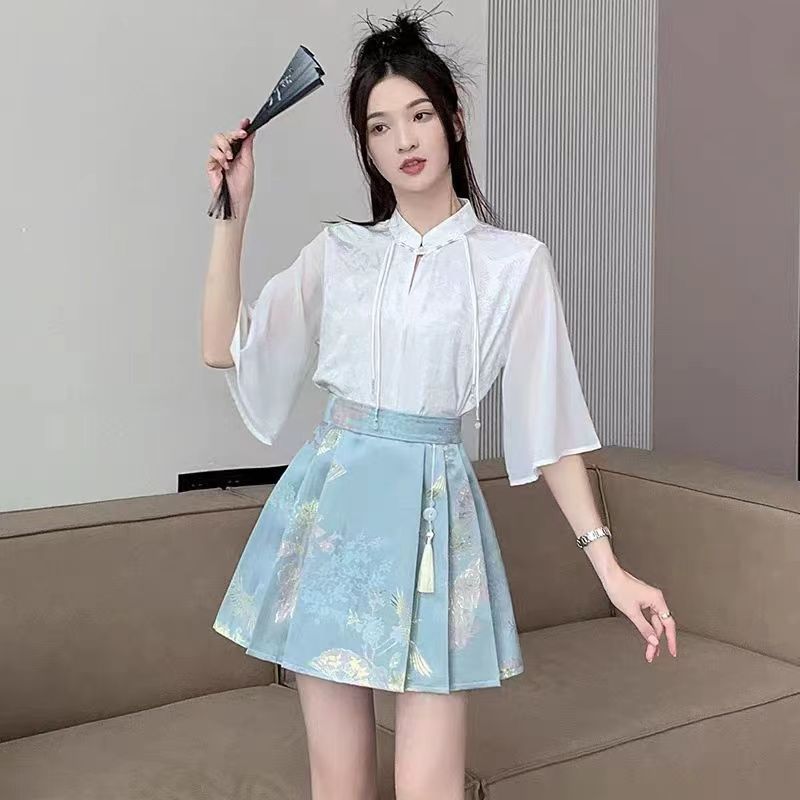 New Genuine Jacquard New Chinese-style Horse-faced Skirt Women’s Spring and Summer National Style Half-length Slim-fit Pleated Skirt Student Version
