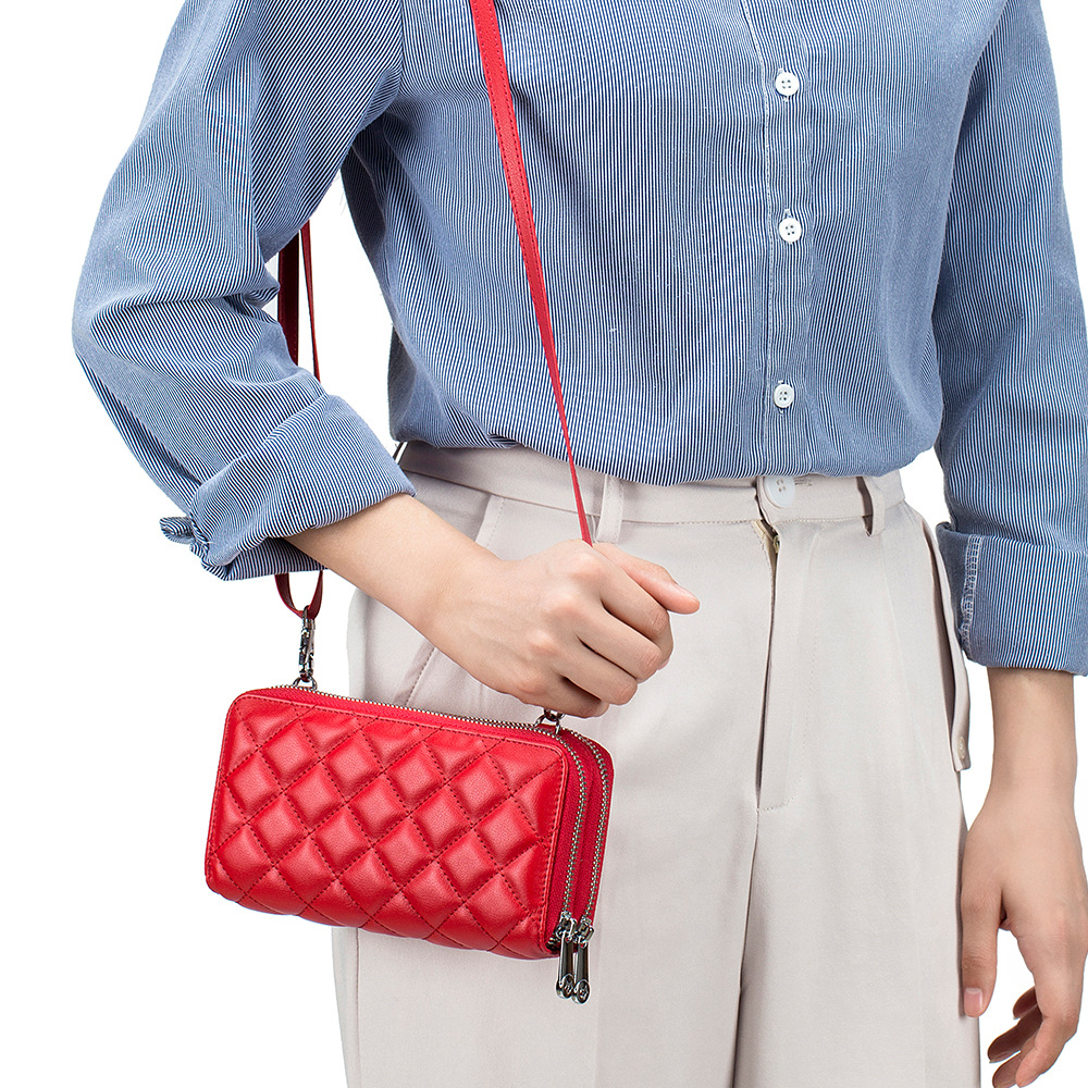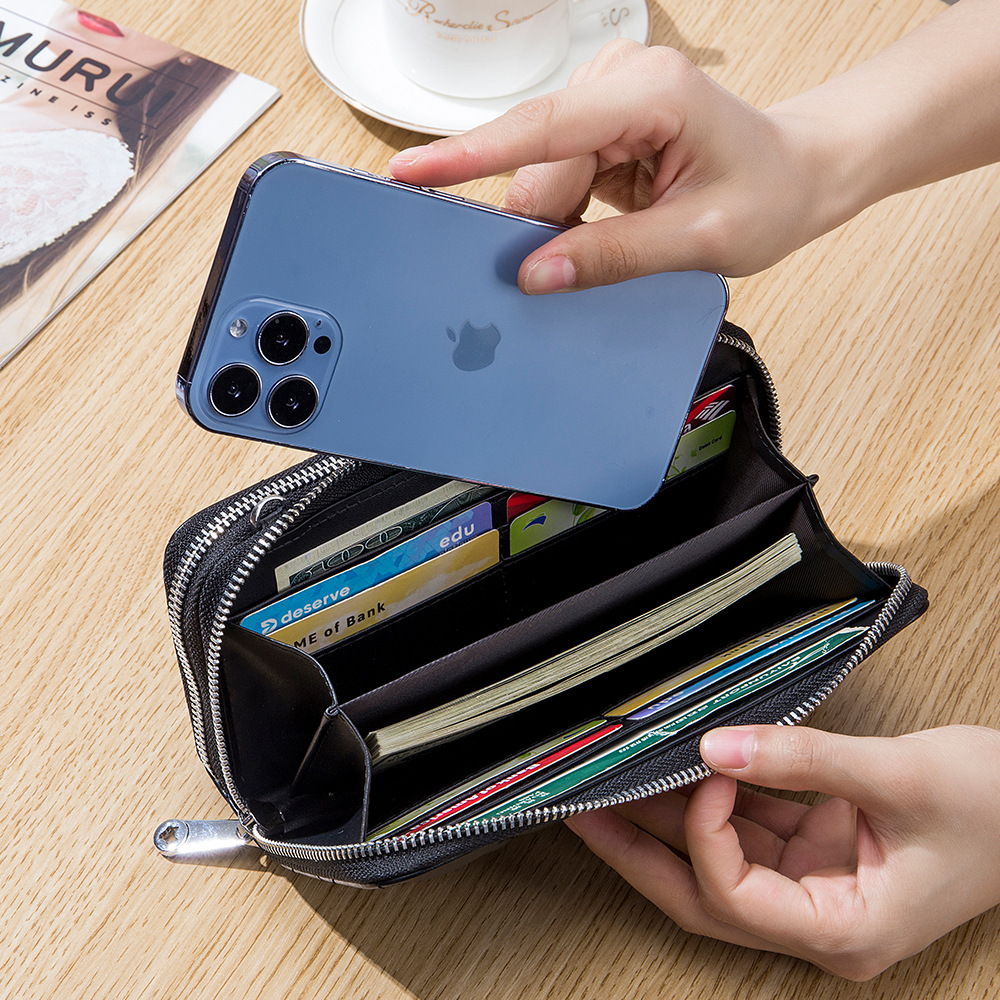 | nameOriginal | New genuine leather fashion double zipper rhombus mobile phone bag women's large capacity wallet long mobile phone messenger bag cross-border |