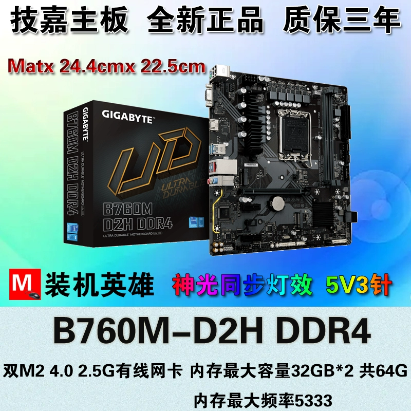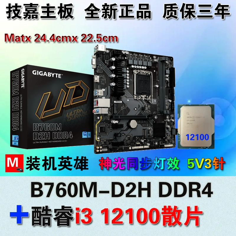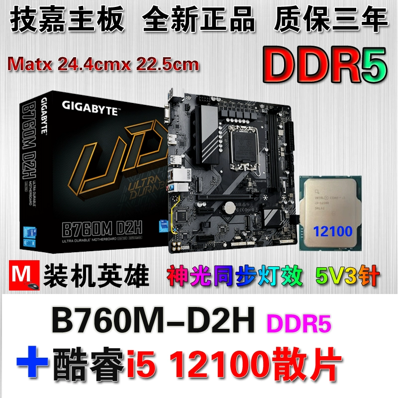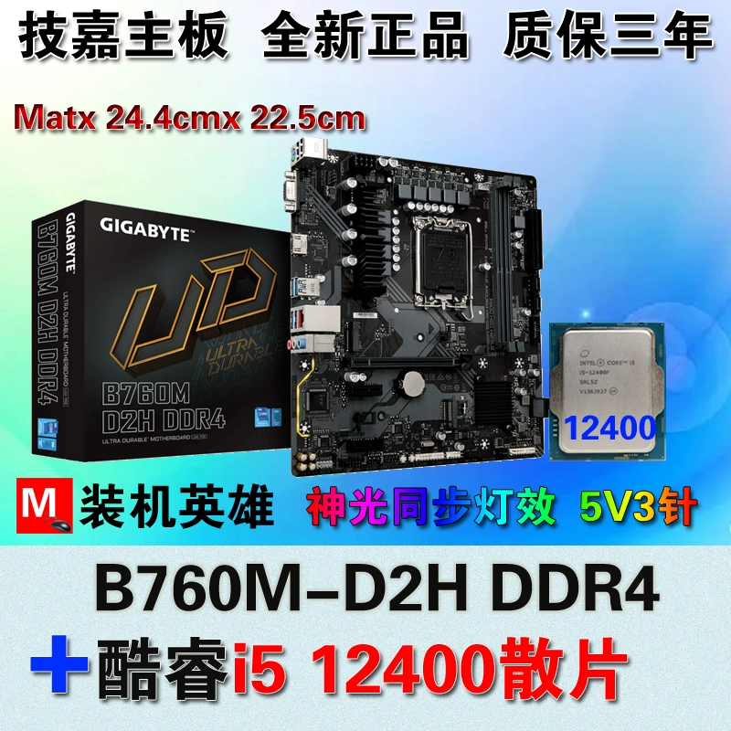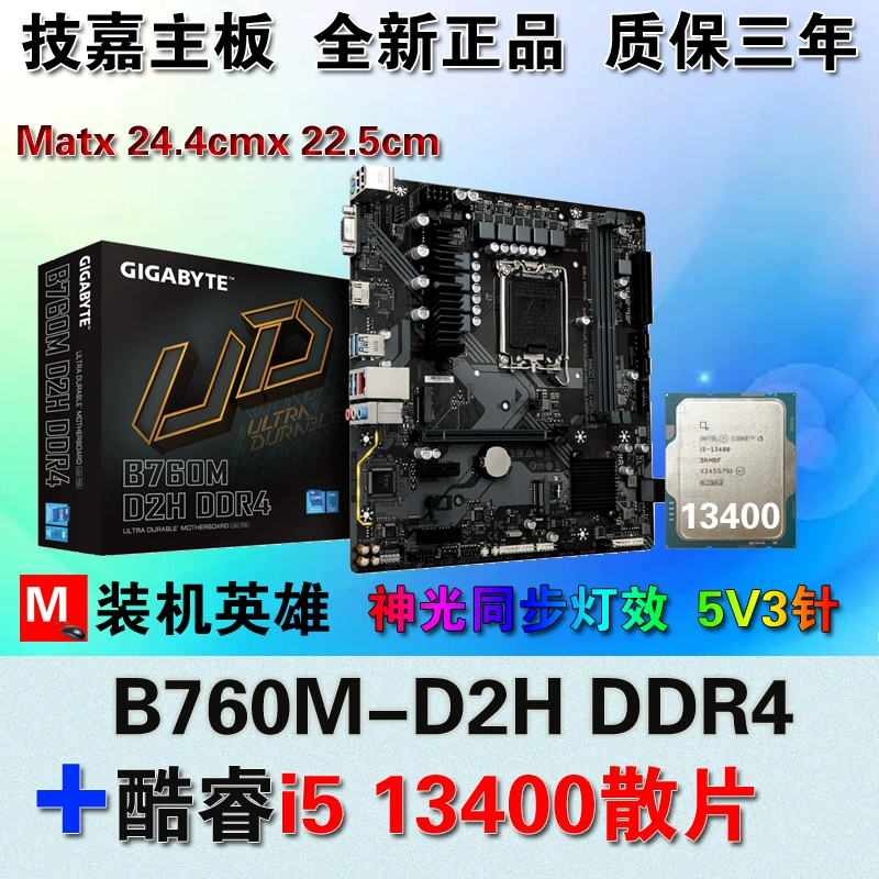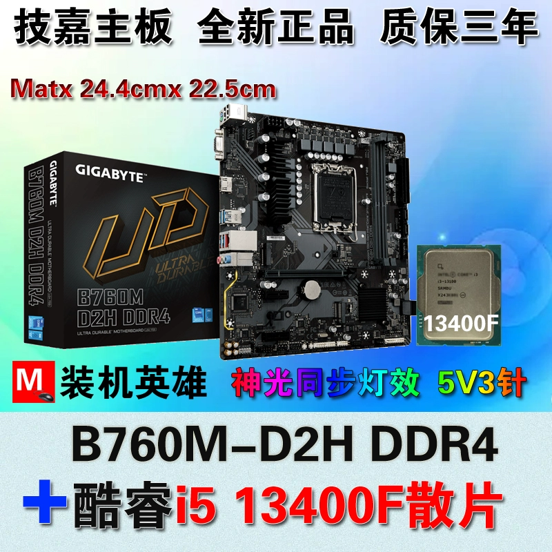 | nameOriginal | New Gigabyte B760M D2H DDR4 13100F13490F13400 12400F CPU motherboard set |