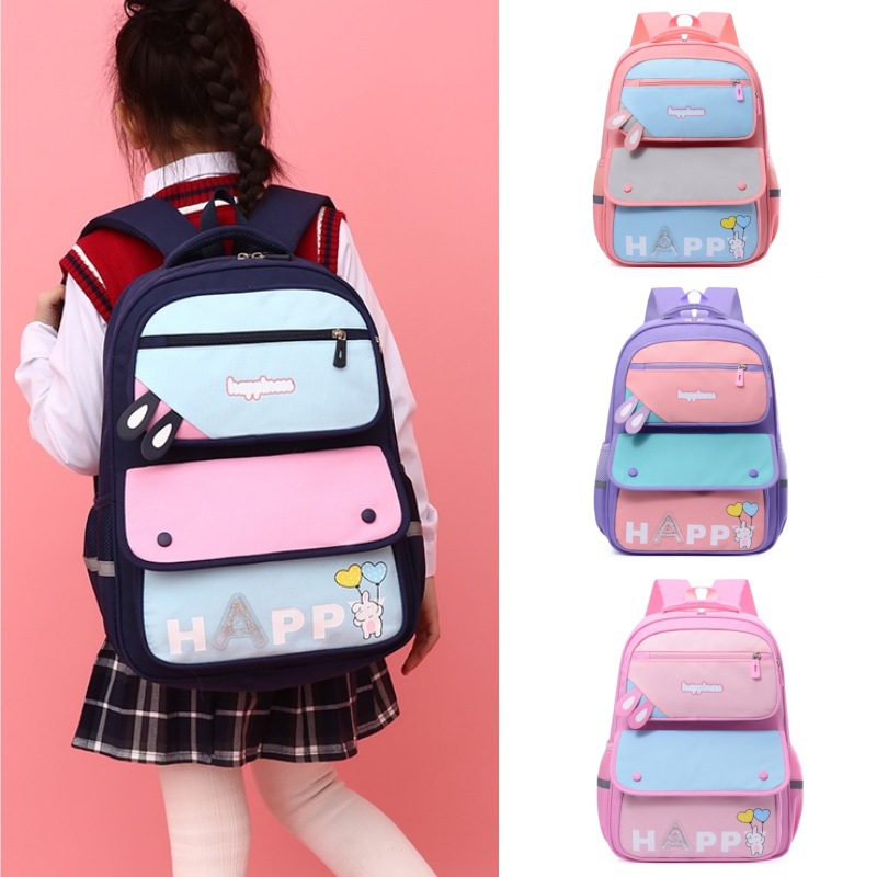 New Girl's color matching cute backpack Korean style Primary School student 1-3-5 grade large capacity burden reduction spine protection schoolbag