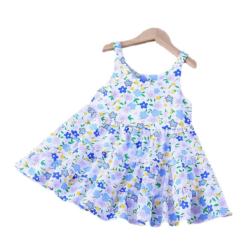 | nameOriginal | New girls' cotton silk dress 2024 summer Western floral princess dress children's baby thin suspender skirt |