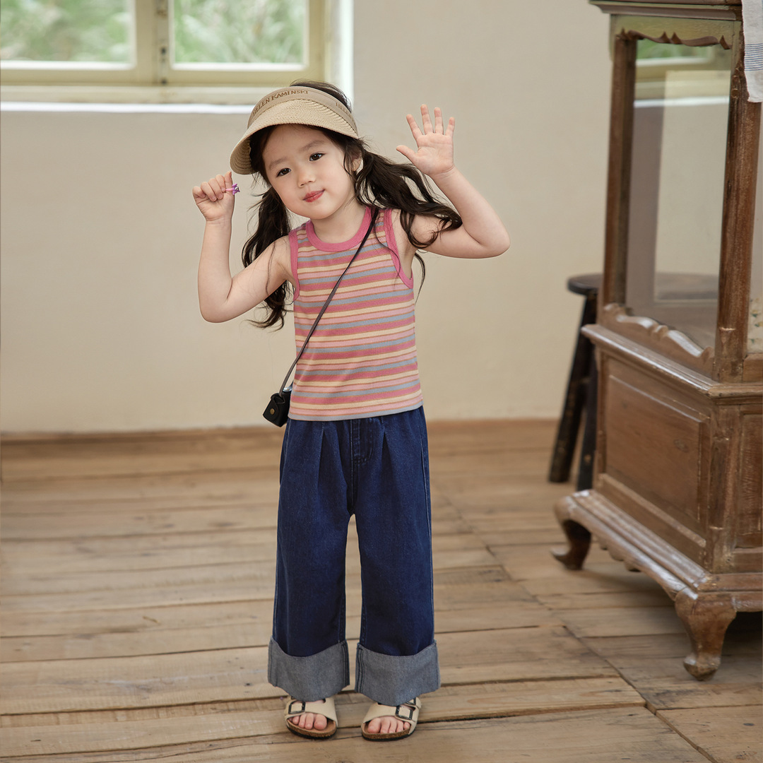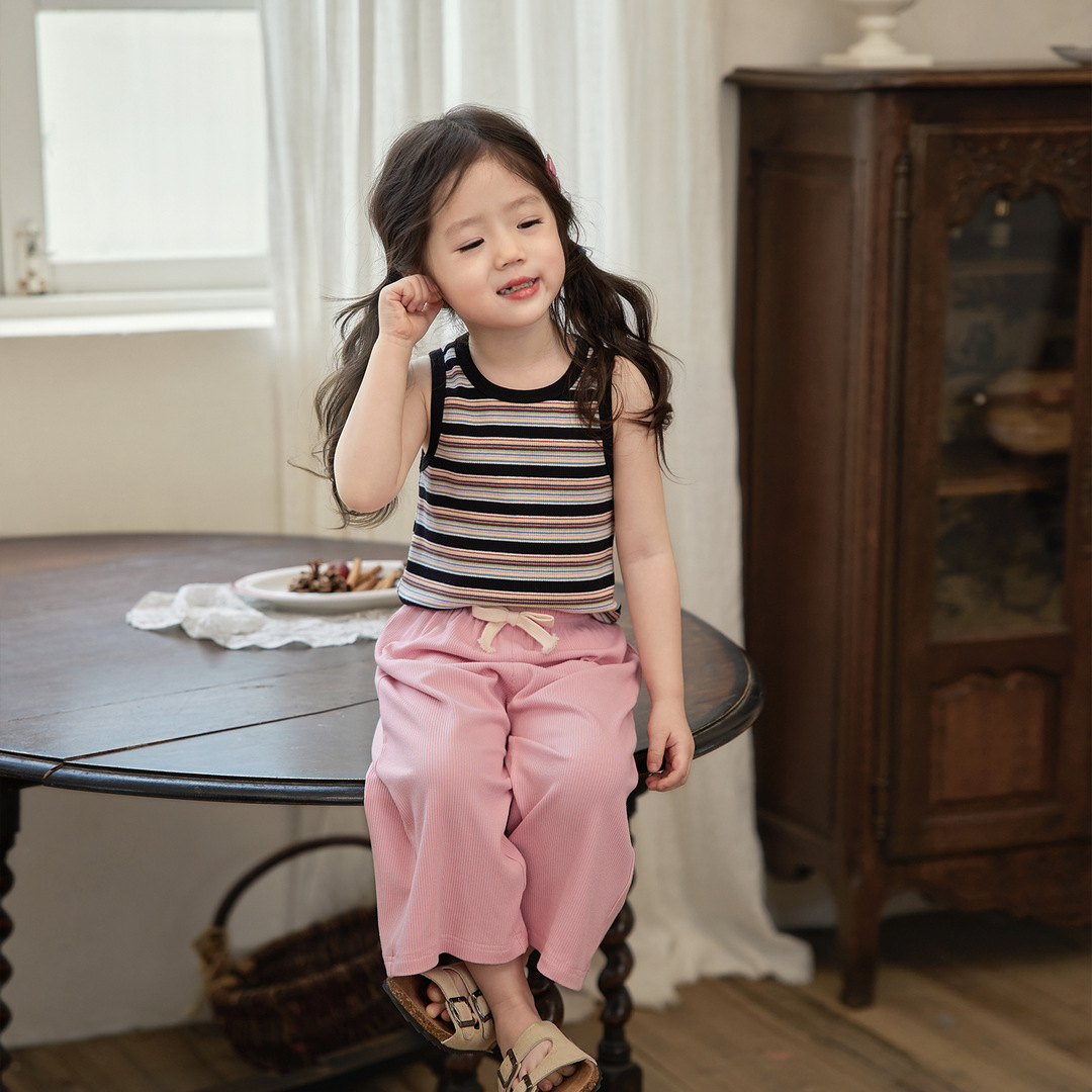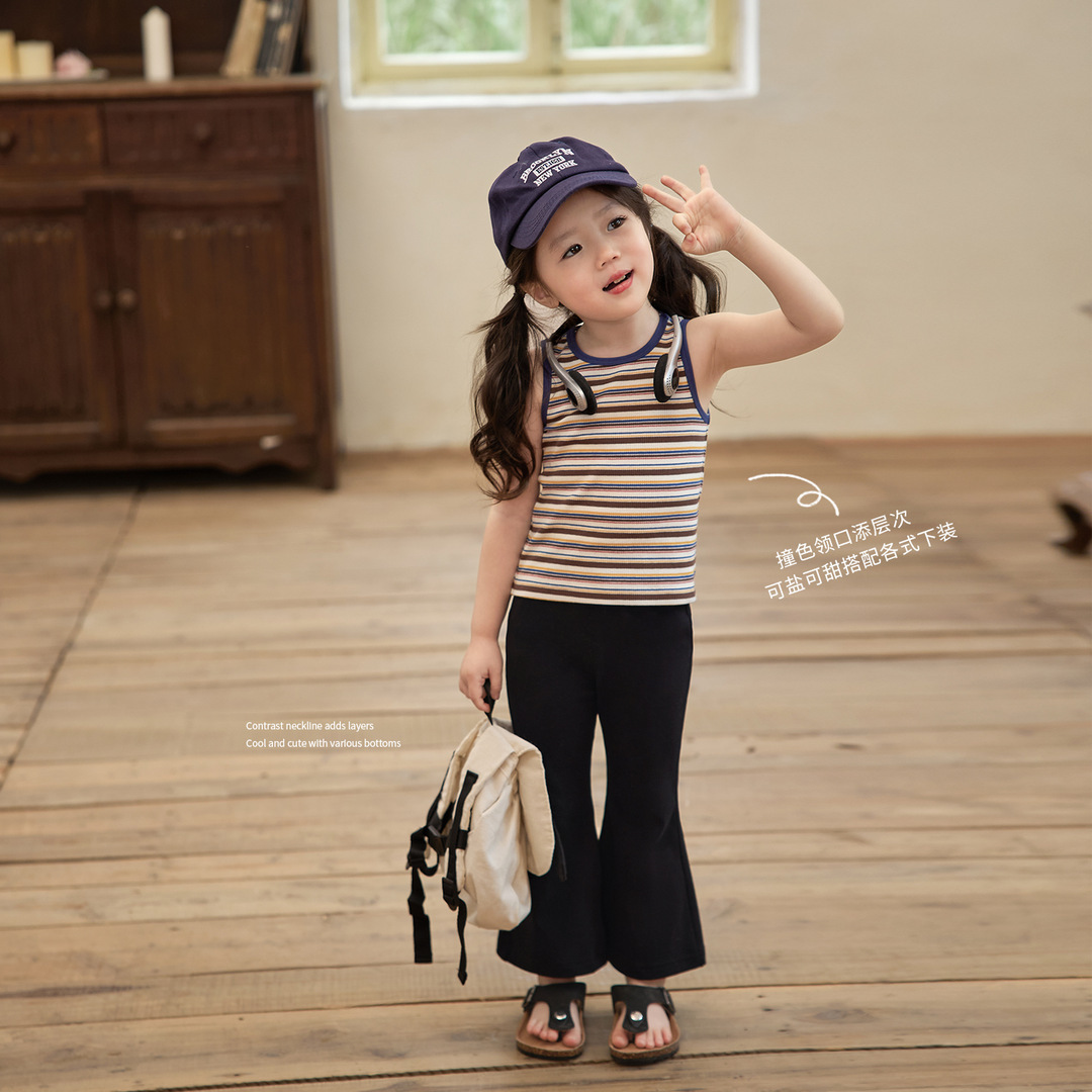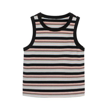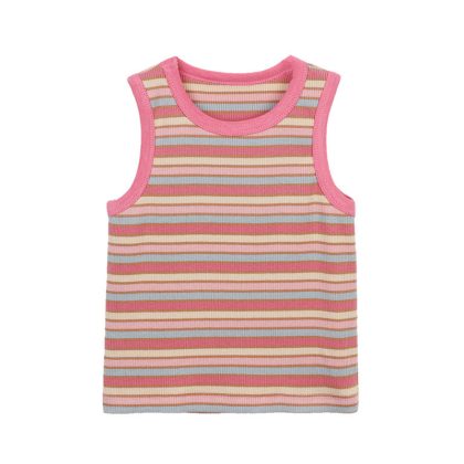 | nameOriginal | New Girls' Korean Style Color Striped Vest Striped Sling Summer Retro Children's Sleeveless T-shirt Rib Sweater Rainbow |