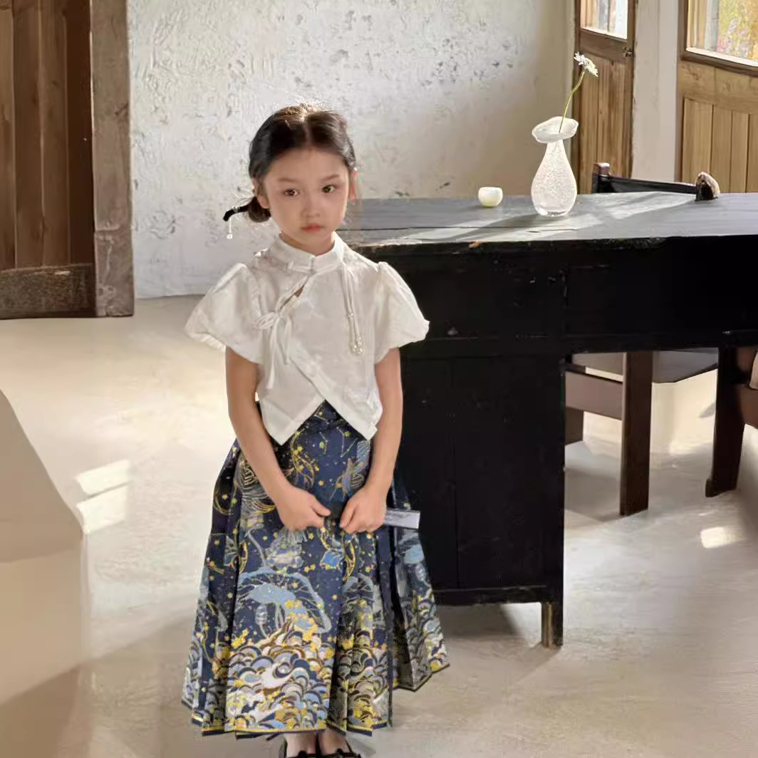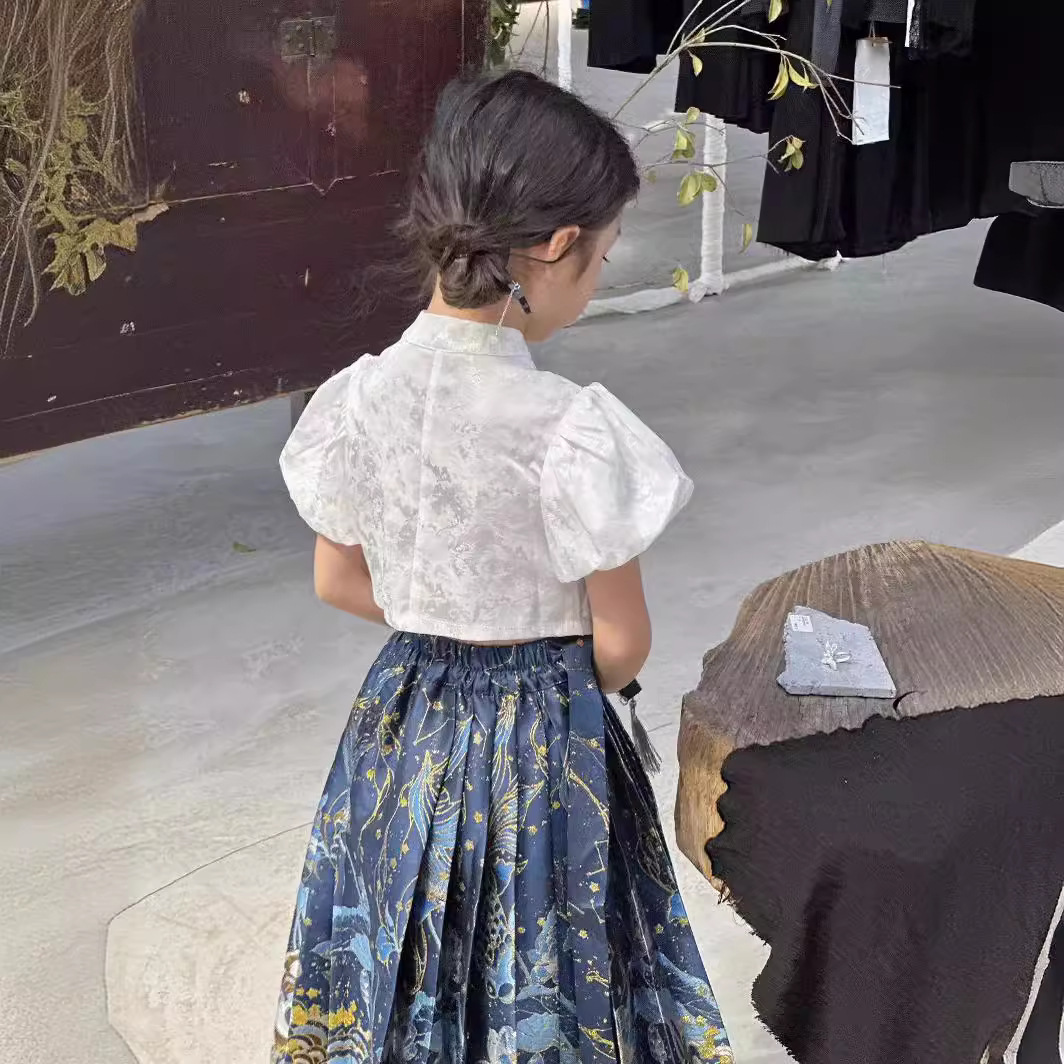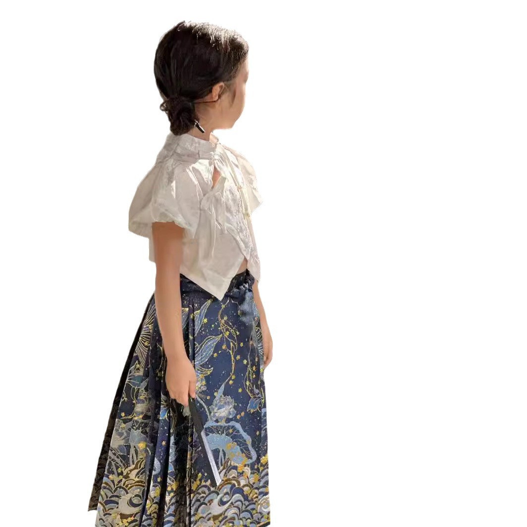| nameOriginal | New Girls' Short-sleeved Horse-faced Skirt suit Chinese Style Xinghe Weaving Gold Skirt Two-piece Six-one Chinese Performance Dress |