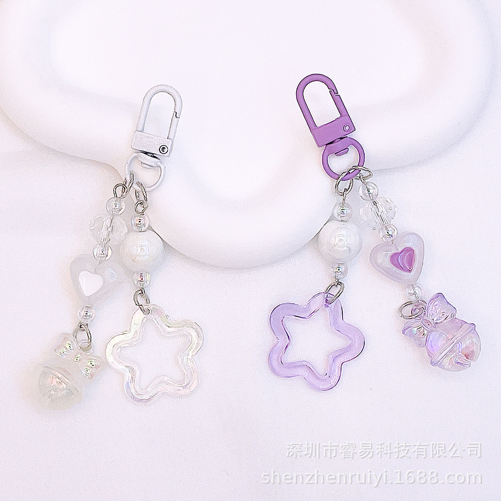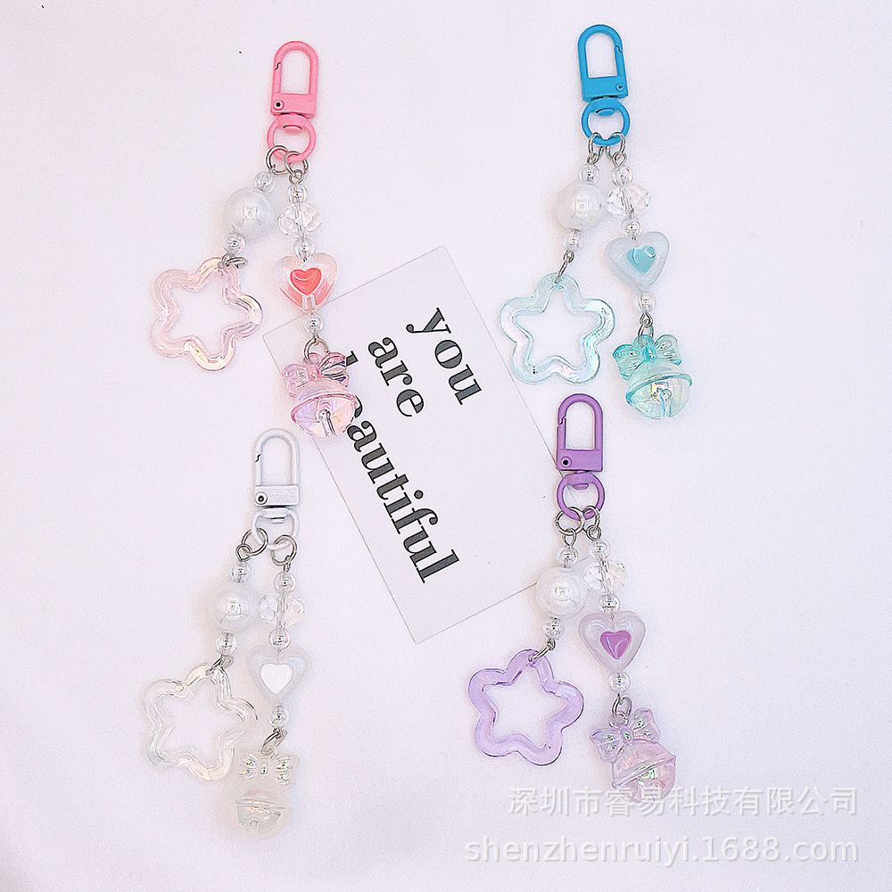| nameOriginal | New glitter hollow acrylic five-pointed star car keychain pendant cream two-color Bell accessories bag accessories |