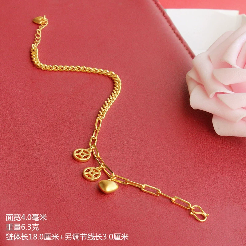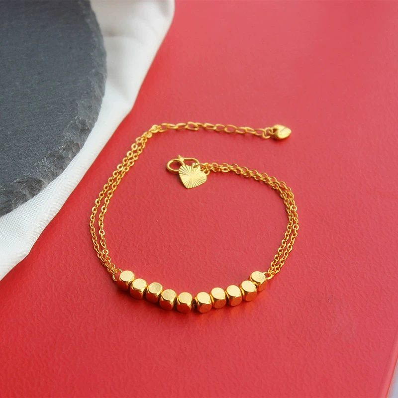 New gold bracelet niche personality double-layer small square sand gold broken gold non-fading AB coin heart-shaped geometric chain