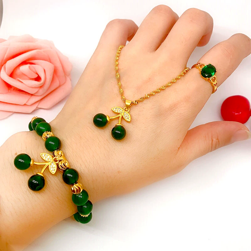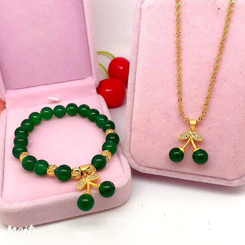 | nameOriginal | New gold-plated bracelet for women 999 cherry pendant green agate bracelet Vietnamese sand gold bracelet as a gift for girlfriend |
