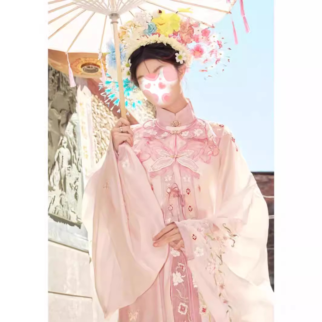 | nameOriginal | New Hairpin Flower Embroidered Hanfu Women's Bright Pink Cloud Shoulder Long Shirt with Vertical Collar Horse Face Skirt Ancient Costery Suit Super Fairy Hanfu |