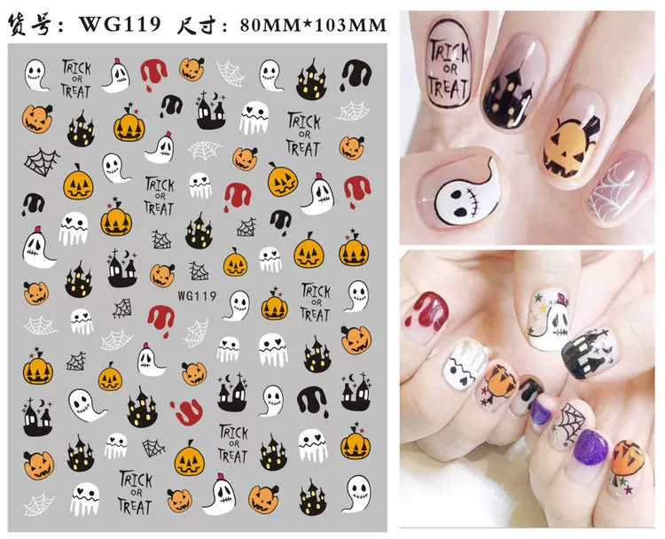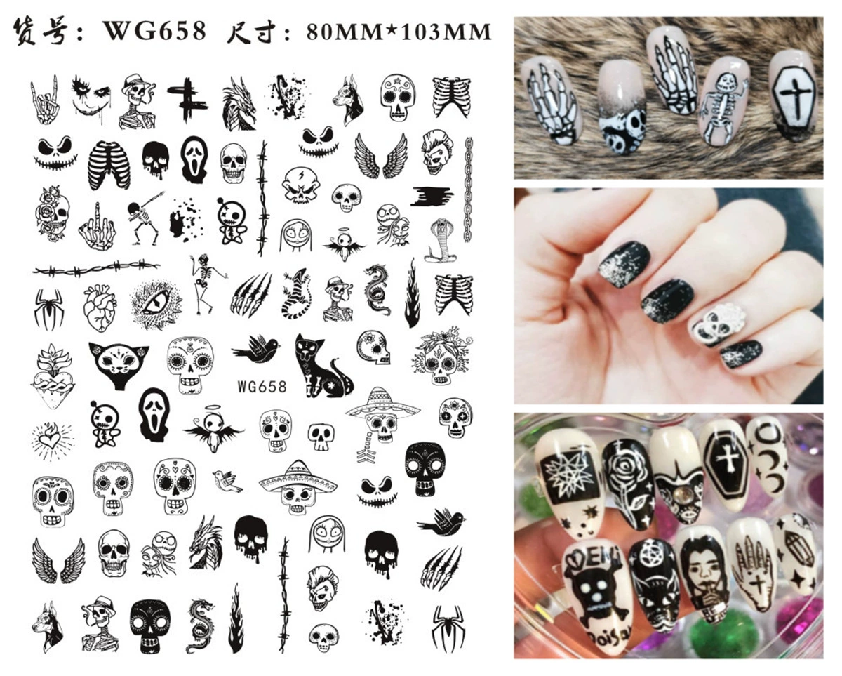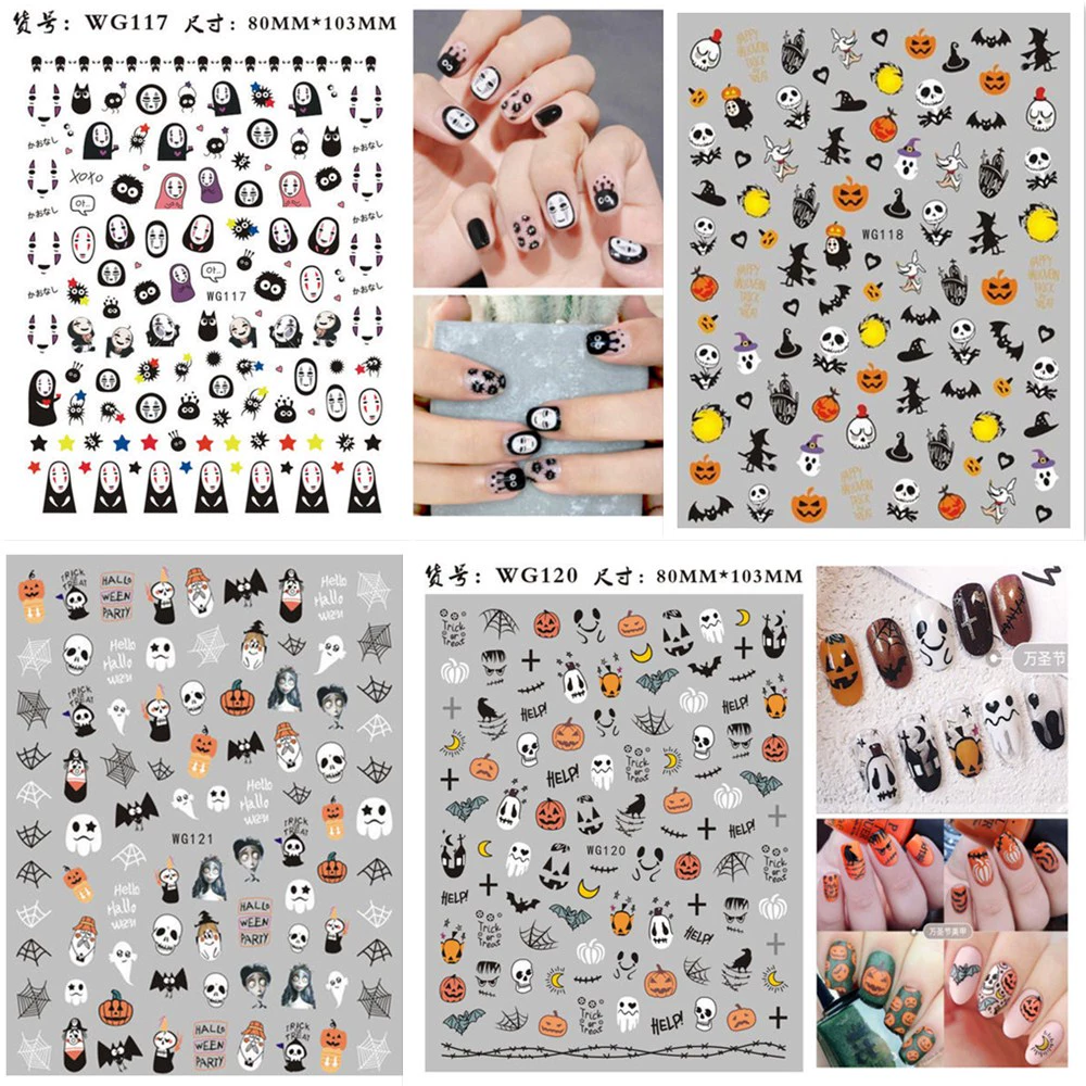 | nameOriginal | New Halloween nail stickers strap glue nail art stickers ins pumpkin skull faceless male nail stickers |