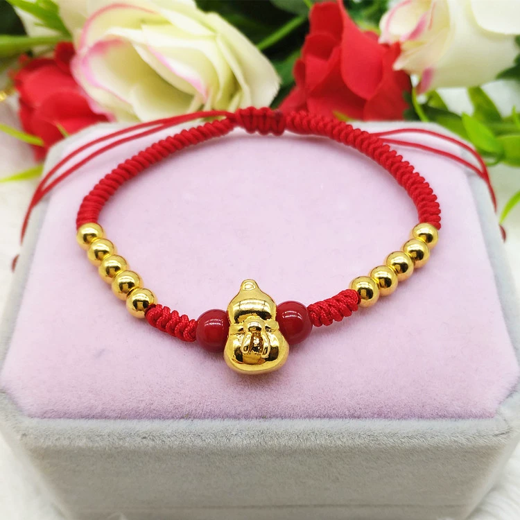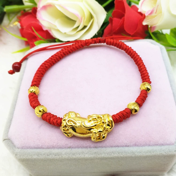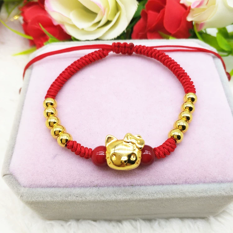 | nameOriginal | New hand-woven red rope 3D Pixiu bracelet for men and women hand-woven gold-plated sand gold transfer bead bracelet kt cat pendant |