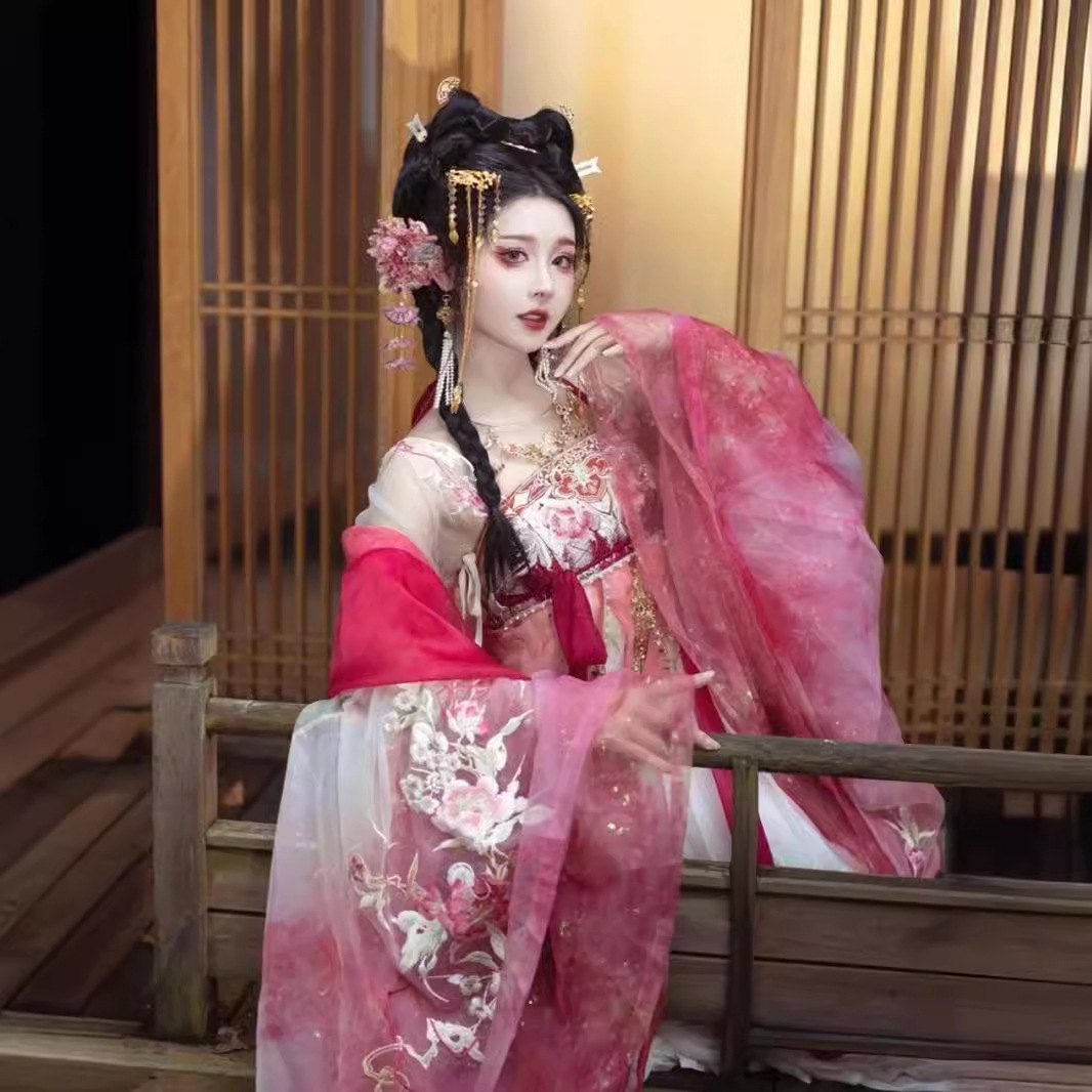 New Hanfu Women’s Da Ji Original Tang Style One-piece Chest-length Chebula Skirt Super Fairy Embroidered Big Sleeve Shirt Spring and Summer suit