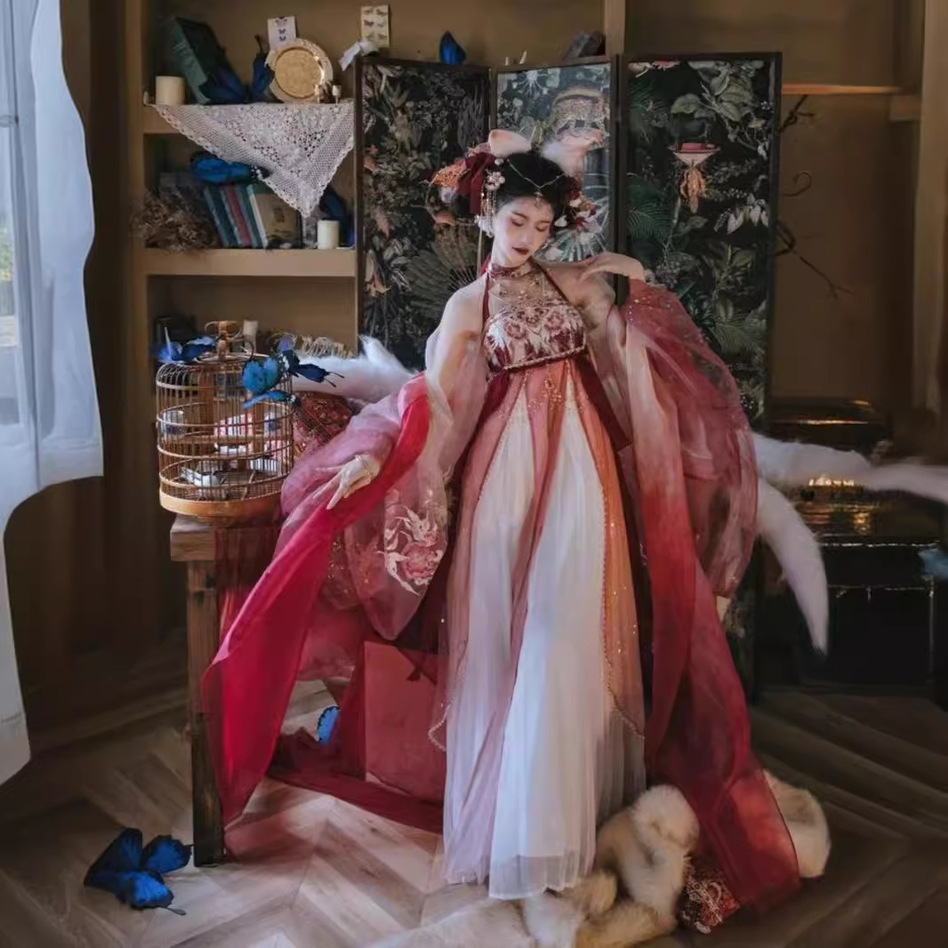 New Hanfu Women's Da Ji Original Tang Style One-piece Chest-length Chebula Skirt Super Fairy Embroidered Big Sleeve Shirt Spring and Summer suit