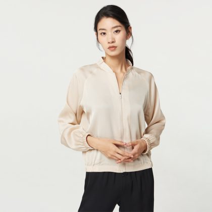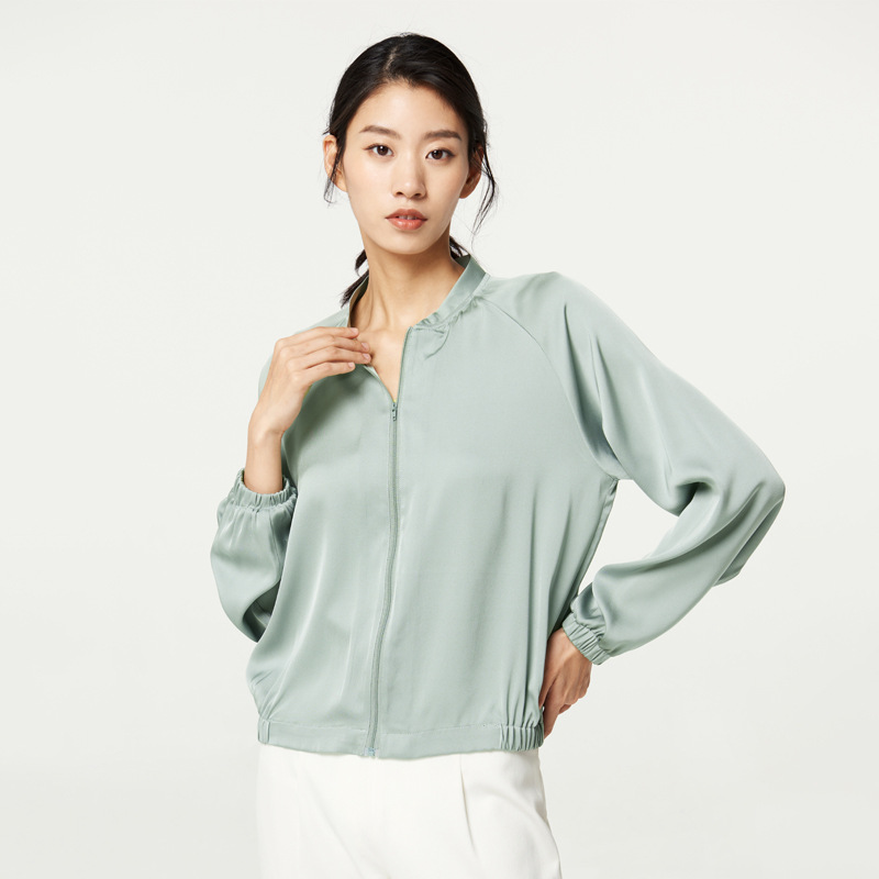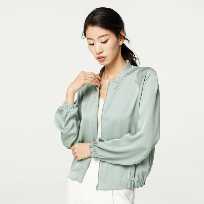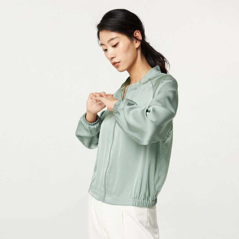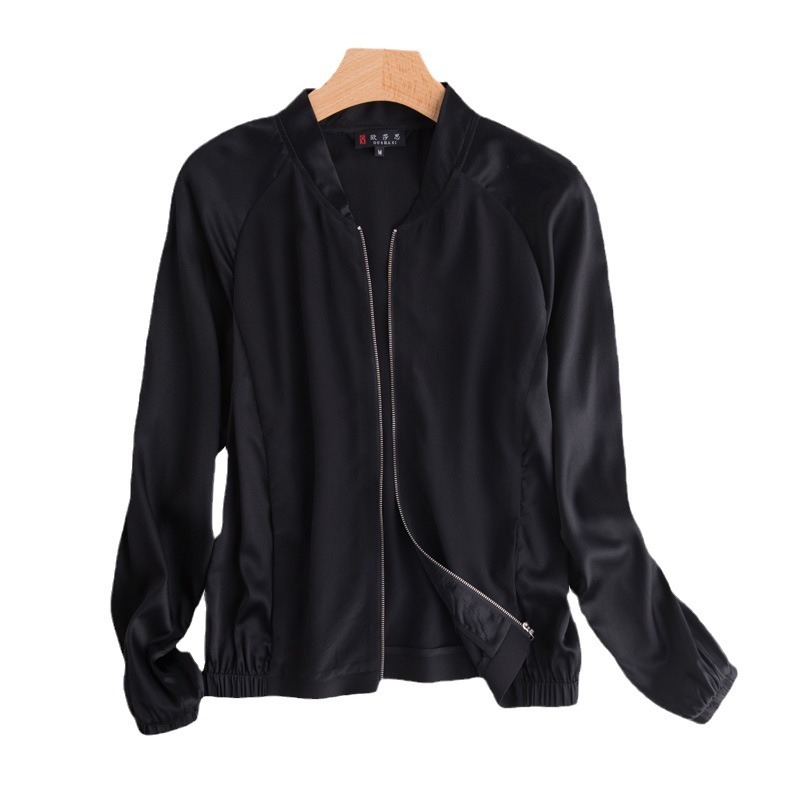New Heavy Mulberry Silk Jacket Stretch Japanese-Korean Baseball Suit Women’s Casual Loose Sports Jacket Sunscreen