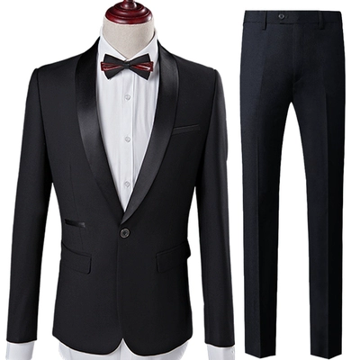 | nameOriginal | New high-end black men's wedding groomsmen's dress host stage adult chorus performance test clothing men's clothing |